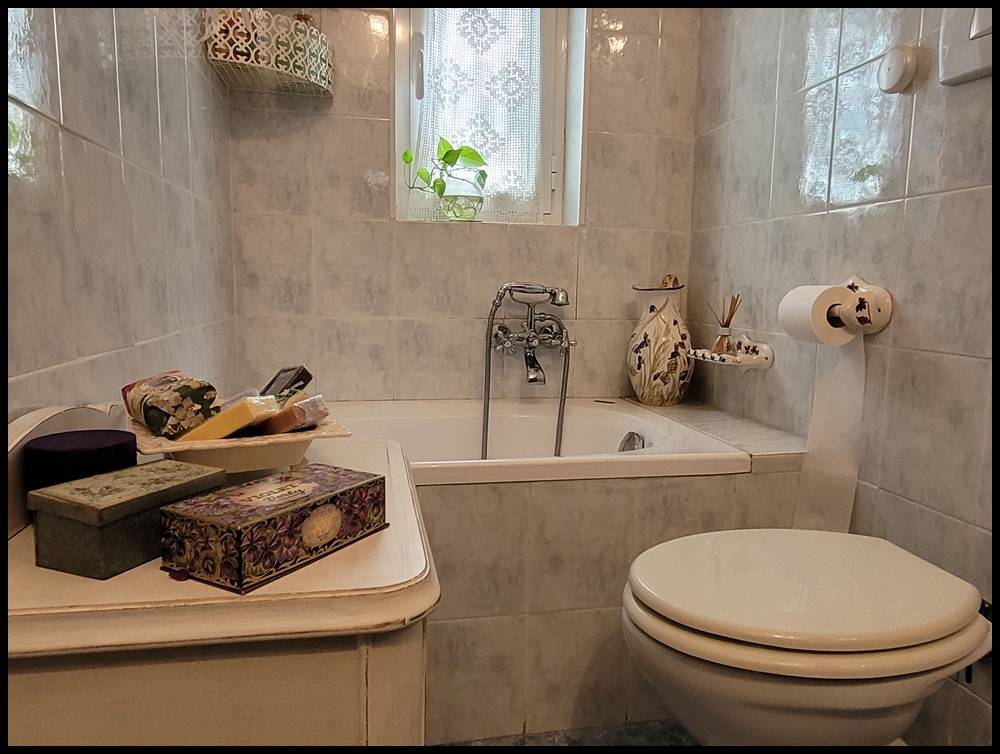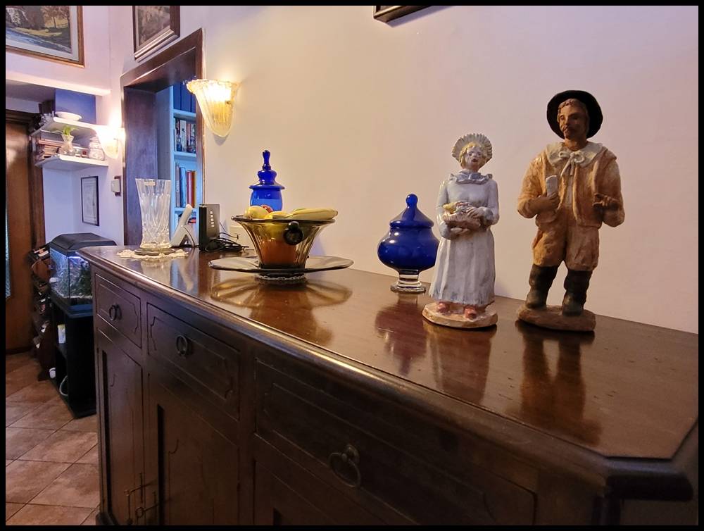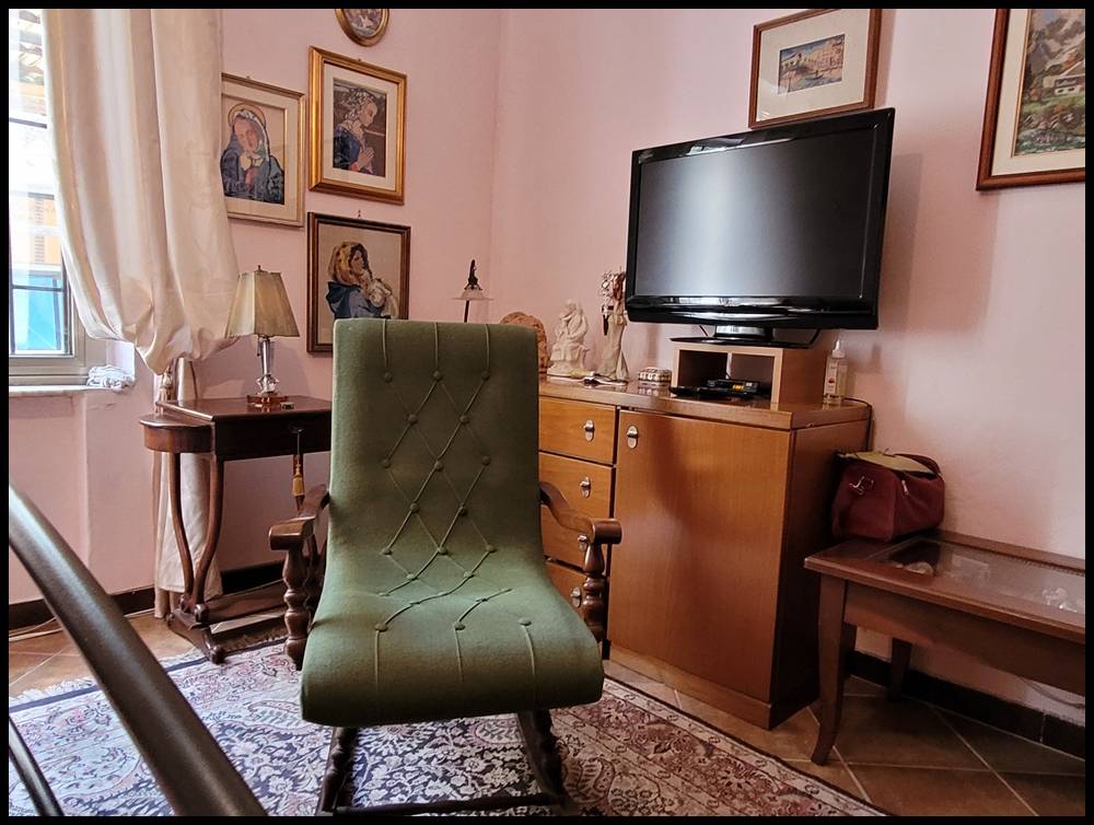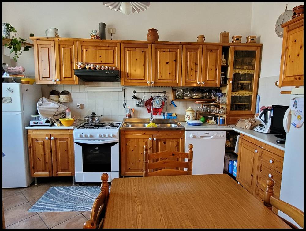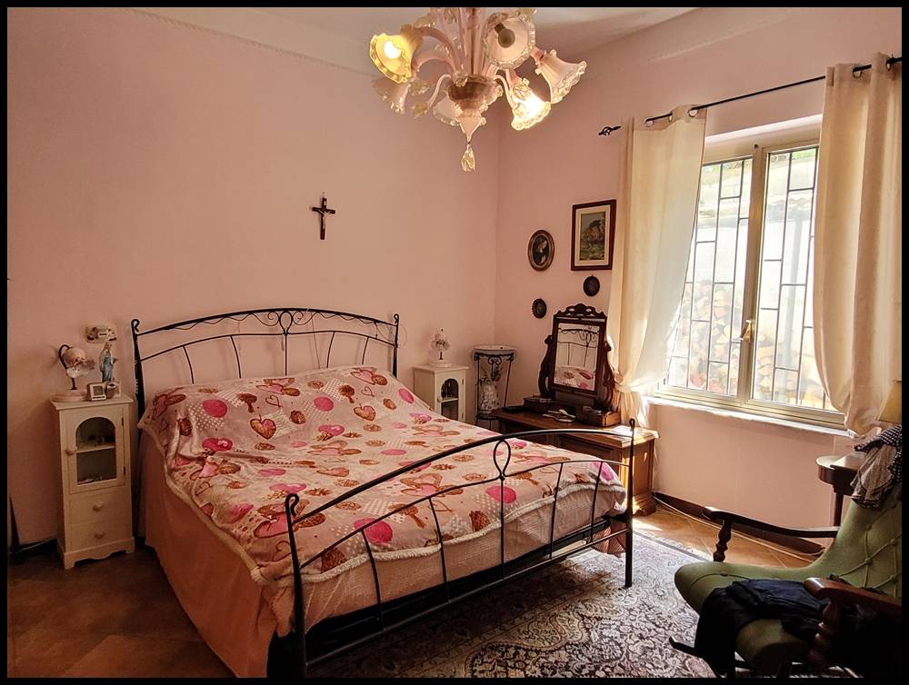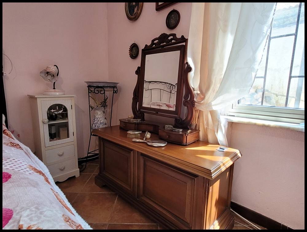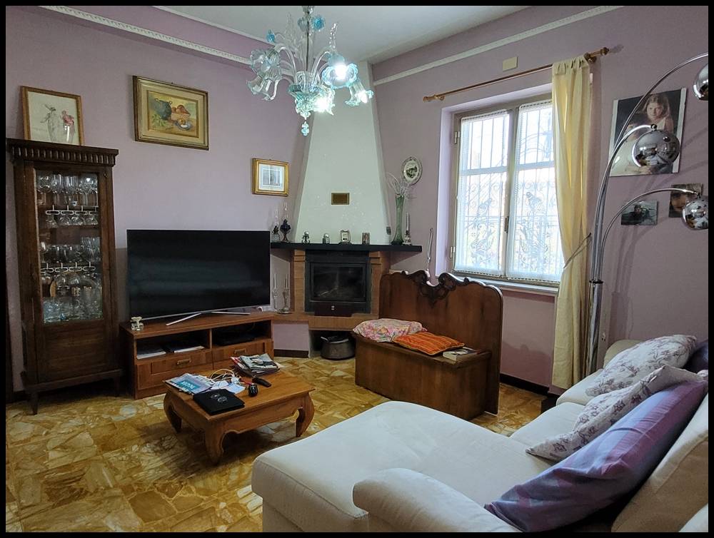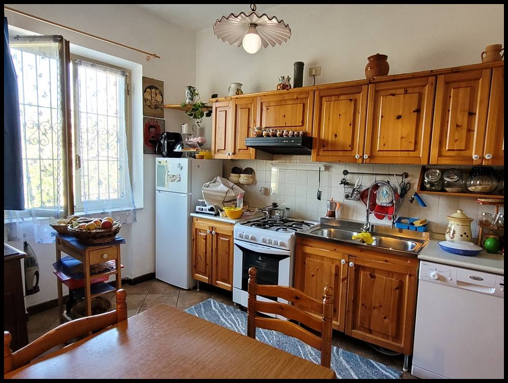 Ingresso da giardino privato, cucina abitabile, due camere, salotto con caminetto a legna canalizzato, disimpegno, doppi servizi e tavernetta con cucina in mratura e forno a legna.