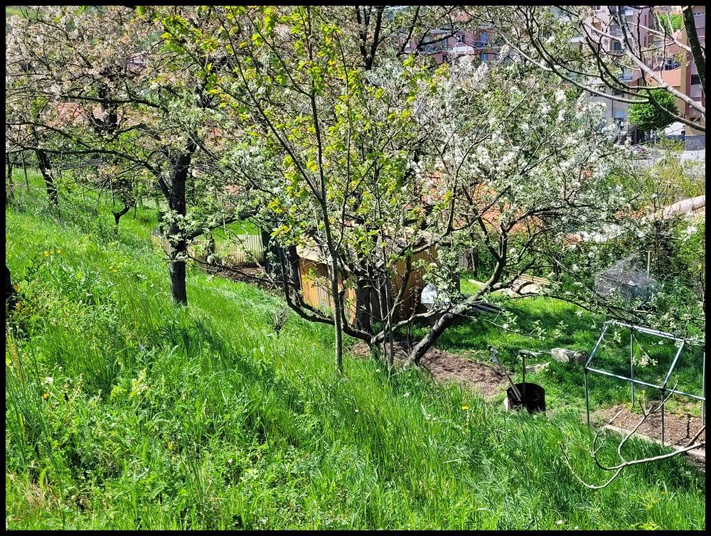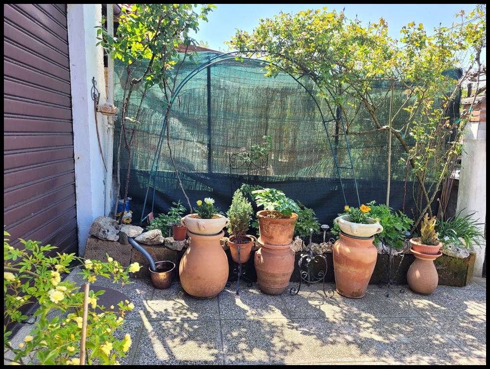 Da scala esterna, posta sul retro dell'abitazione, si accede alla terrazza di circa 60 mq, soprastante parte dell'abitazione, e al terreno di proprietà, di oltre 1000 mq, sistemato a terrazze e adibito in parte a orto.