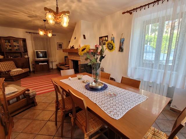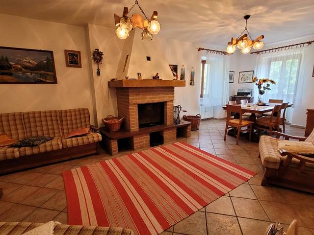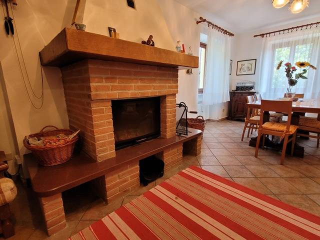 Piano terra: ingresso, soggiorno doppio con caminetto, ampia cucina e bagno.