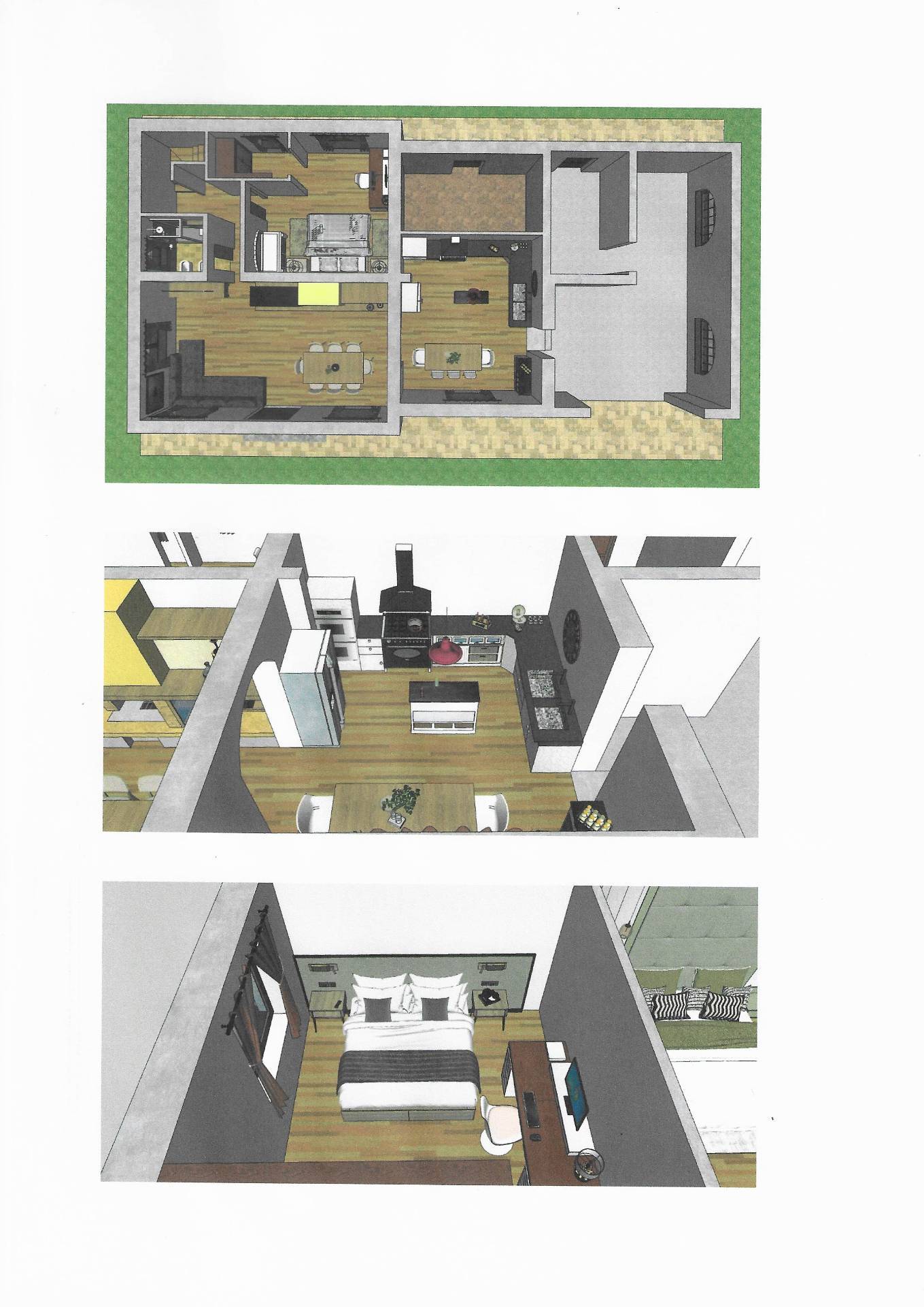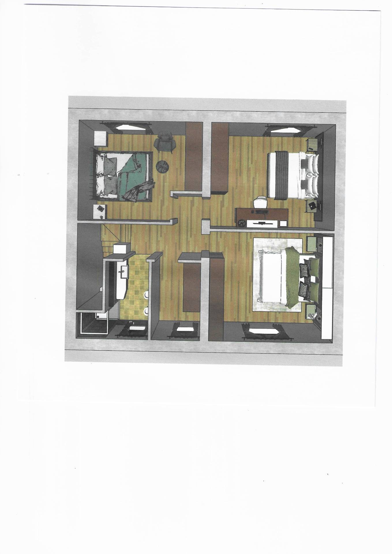 Il progetto della Villa presenta al piano terra un ampio porticato, cucina abitabile, ampio soggiorno con caminetto, disimpegno con scala che conduce al piano superiore, camera,