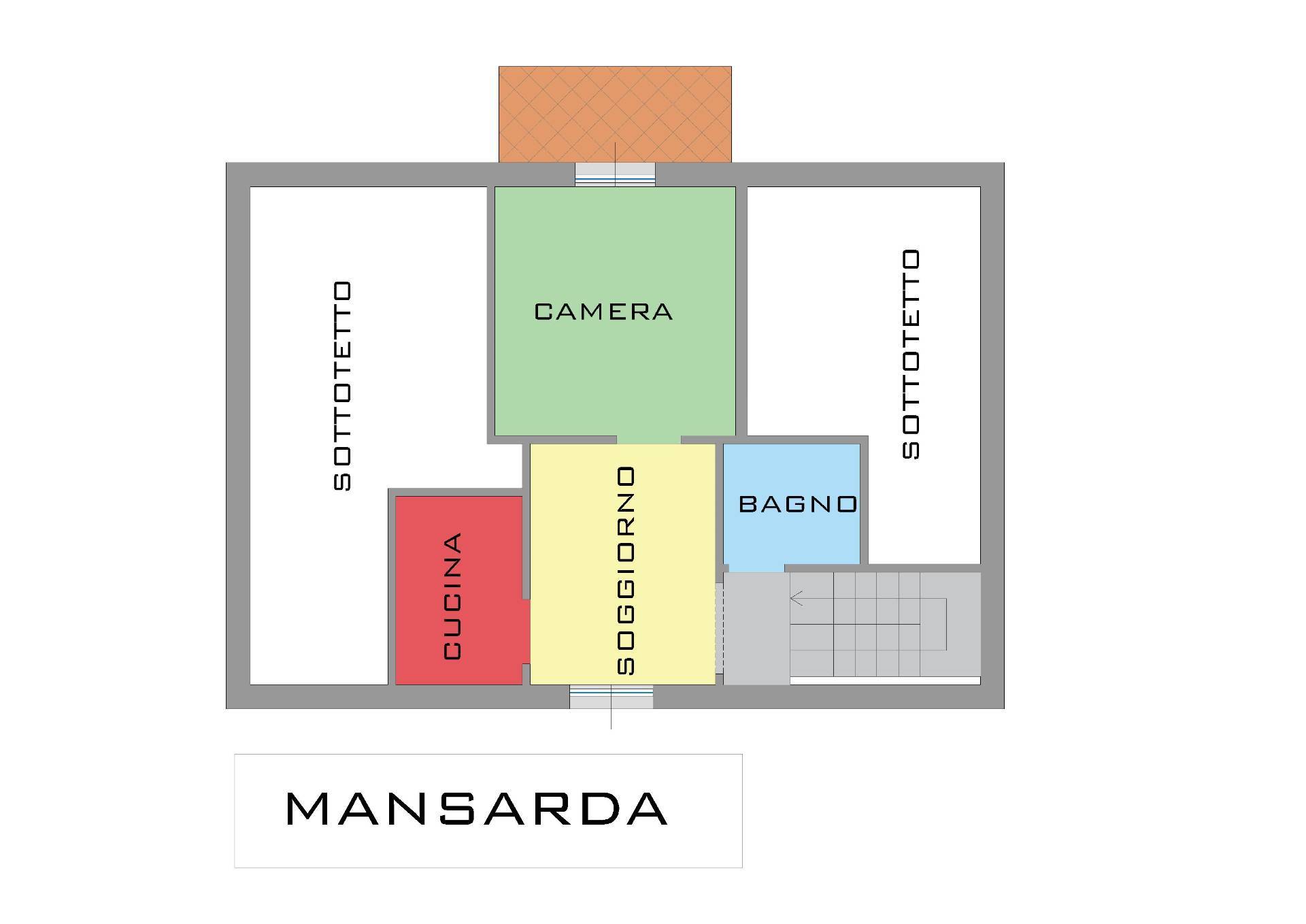 Da scala interna si accede alla mansarda dove troviamo un open space con balconcino, angolo cotture e bagno.
