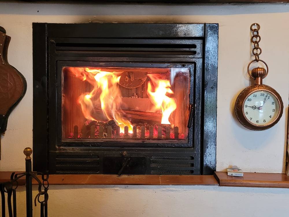 Riscaldamento con caldaia a GPL e termosifoni, stufa a pellet in aggiunta al primo piano e termocamino al piano taverna.