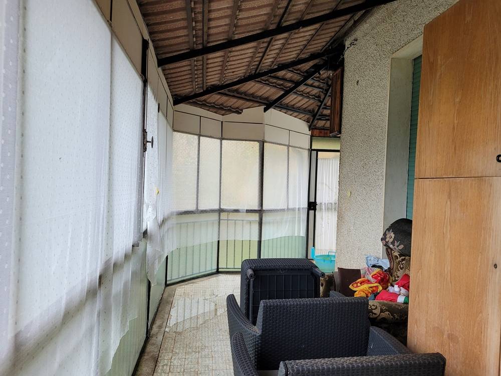 Ampia balconata verandata che si sviluppa su due fronti della casa.