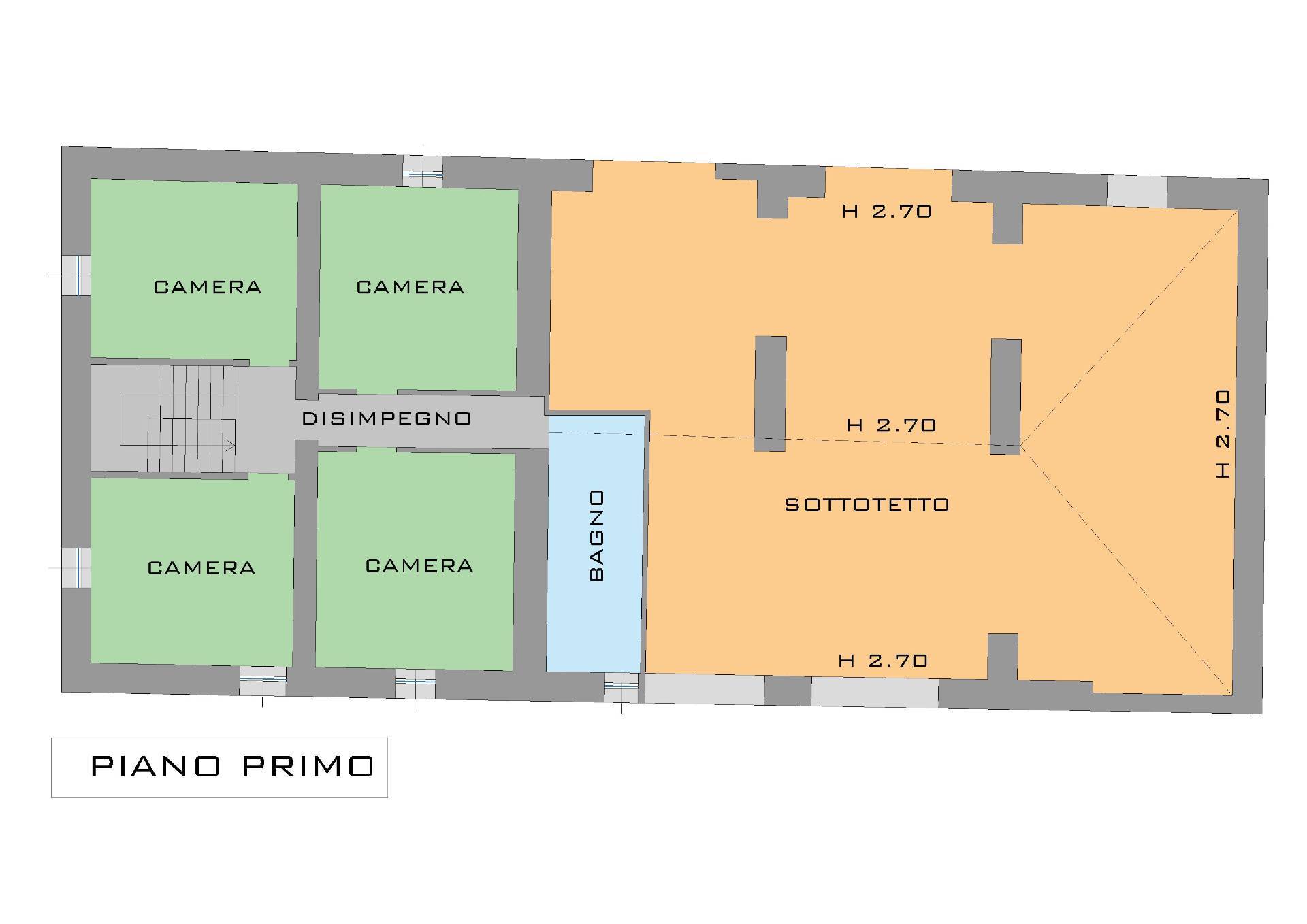 Al primo piano, raggiungibile da scala interna, troviamo quattro camere e il bagno.