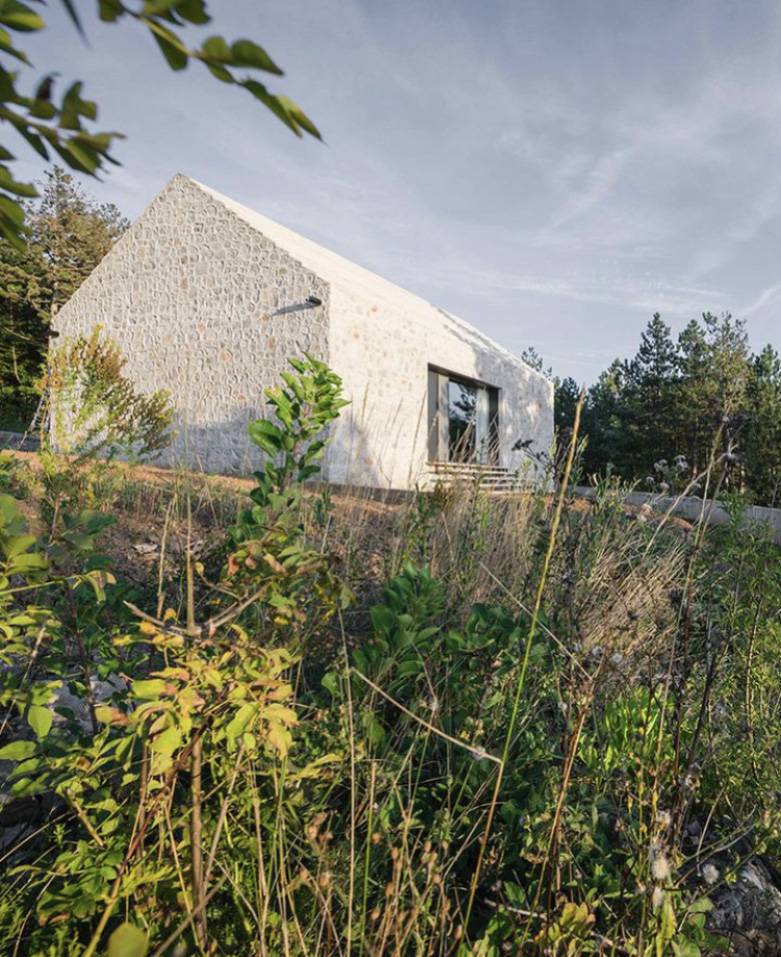 Il progetto prevede la costruzione di una villetta rivestita in pietra facciavista che si sviluppa su un piano a tuttaltezza con tetto a vista e possibilità di soppalco.
