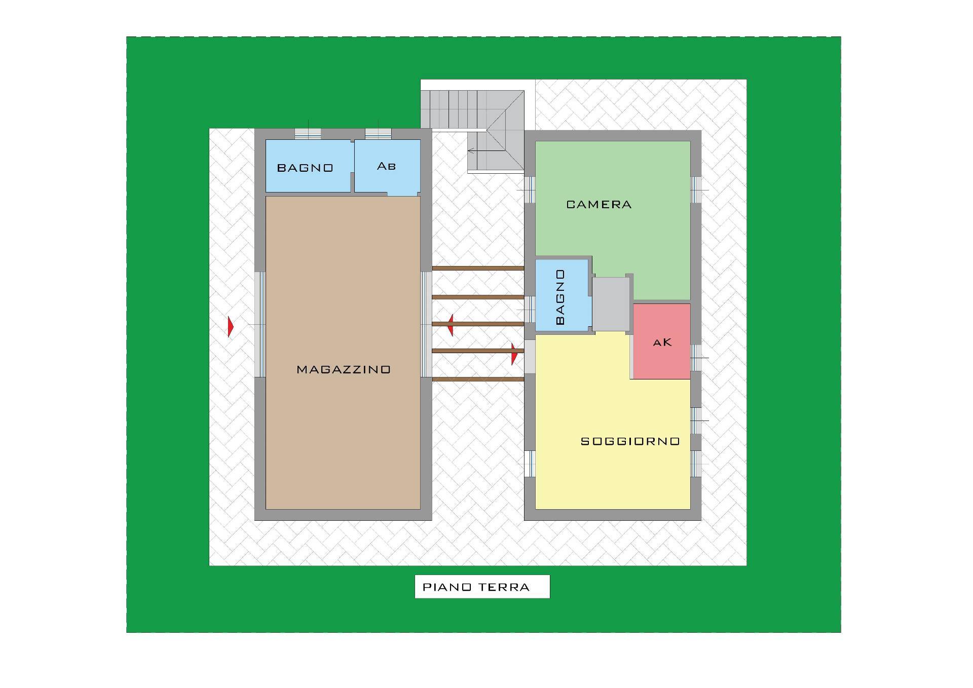 Tra le due costruzioni una pergola da personalizzarsi che unisce i due corpi di fabbrica.