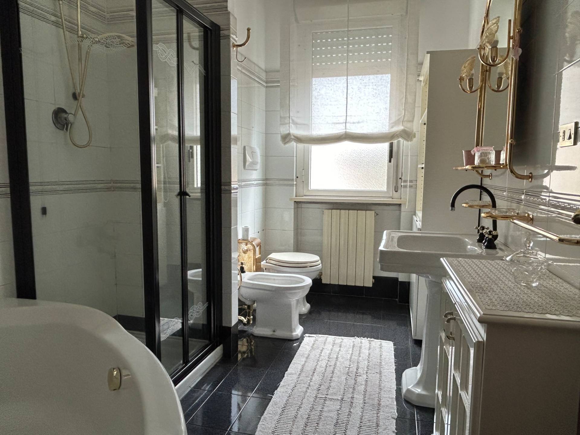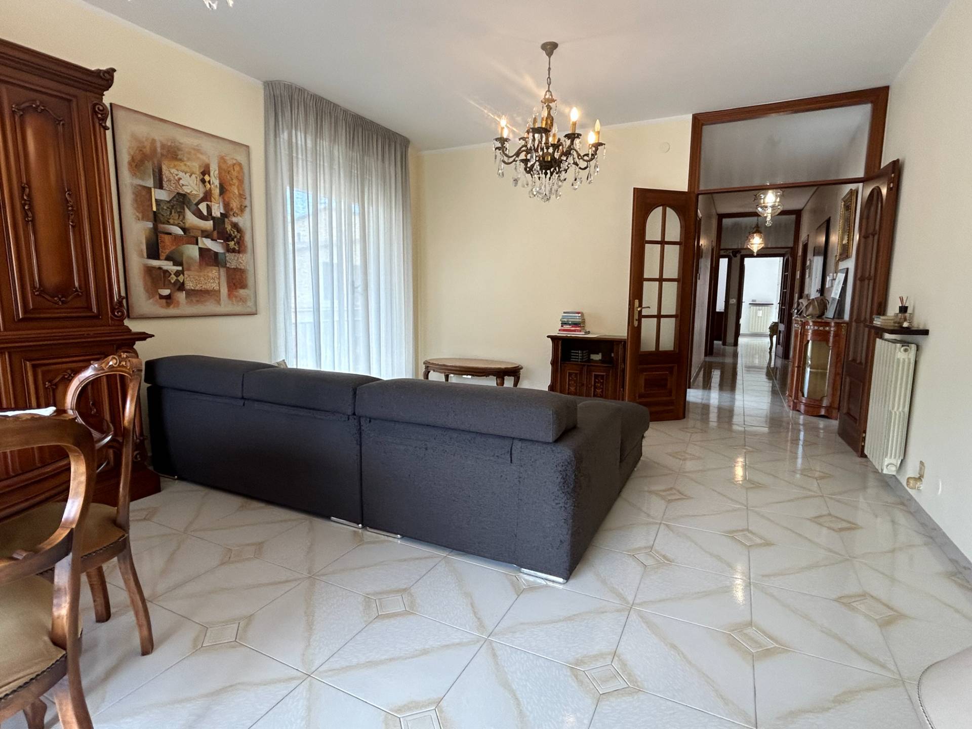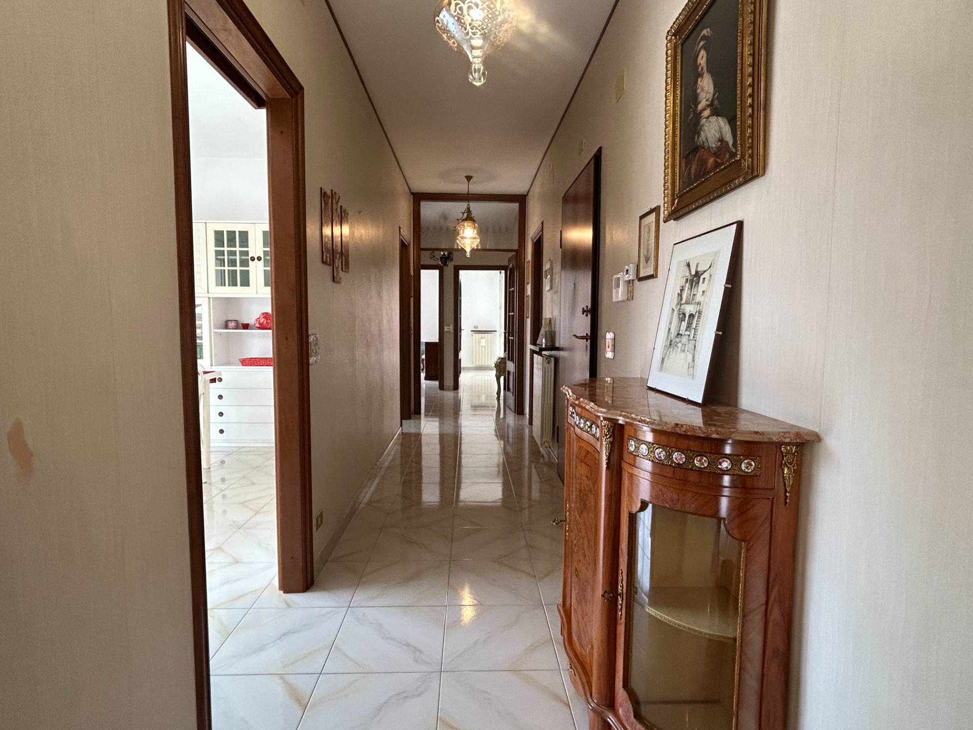 I pavimenti, uguali in tutta la casa sono di marmo di colore chiaro, le finiture di pregio, il termo autonomo con caldaia recente, ed il videocitofono sono i plus che offre questo Appartamento signorile. In futuro, si potrebbe acquistare (è della stessa proprietà) un Appartamento più piccolo, di circa 50/60 mq che si trova allo stesso piano sul lato ovest della palazzina. Questo permette di avere un Appartamento ancora più grande, unendoli insieme, oppure di avere un alloggio attiguo, magari per i genitori o i nonni.