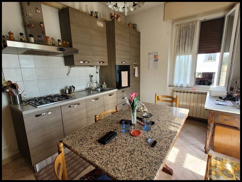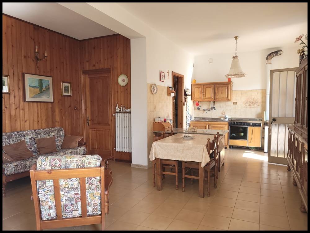 Qui troviamo: ampio soggiorno con cucina a vista, disimpegno, tre camere, bagno e ripostiglio.