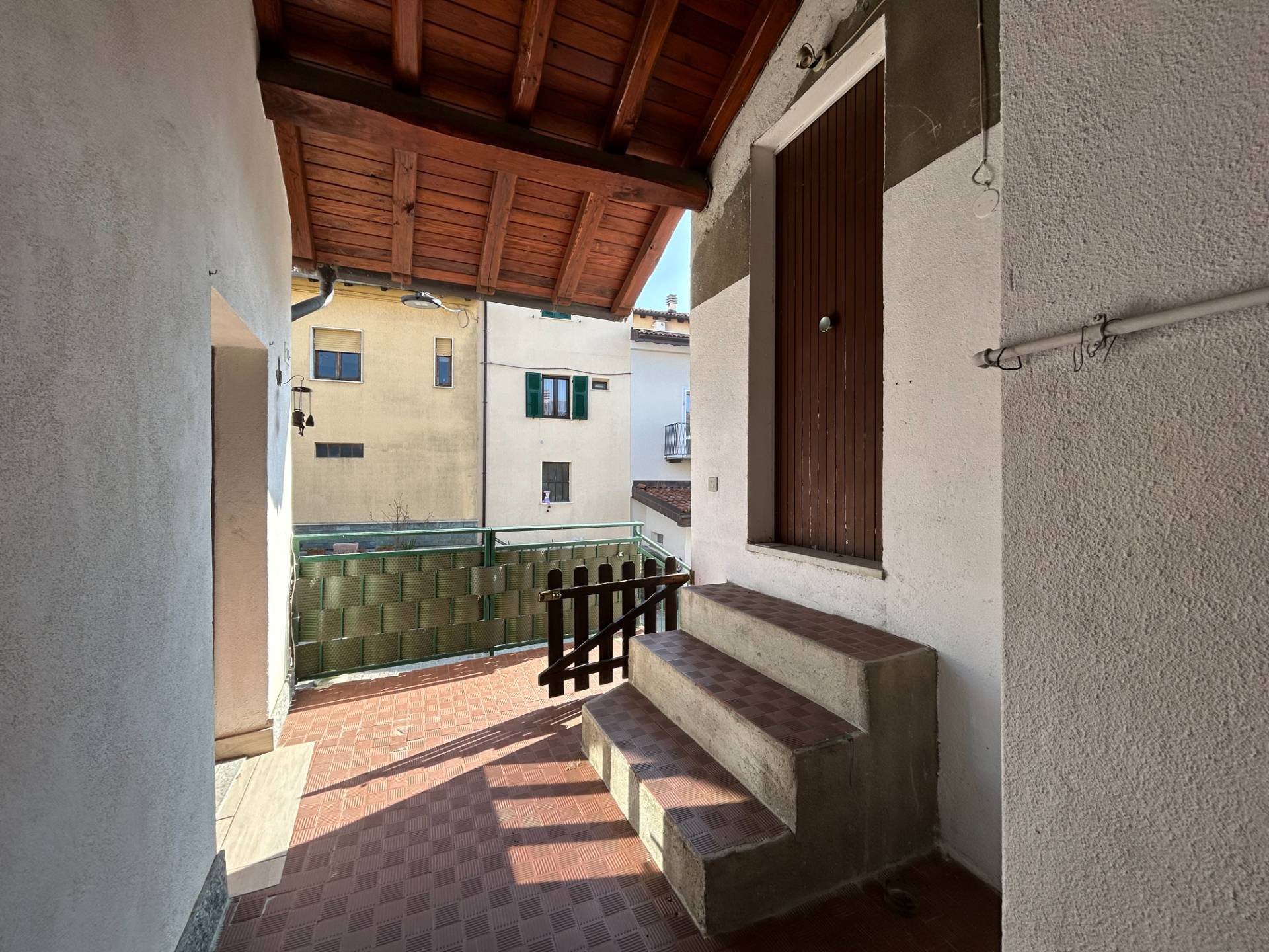 Al primo piano un bilocale composto da ingresso direttamente su zona giorno con piccola cucina, bagno dotato di doccia e una camera da letto matrimoniale. Le finestre di questi due appartamenti permettono di godere appieno del panorama della verde vallata sottostante.
