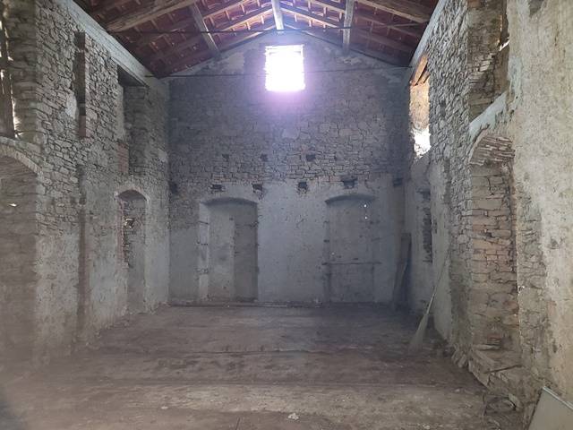 L'edificio principale presenta al piano seminterrato una grande locale originariamente la stalla e una cantina con accesso da zona porticata.