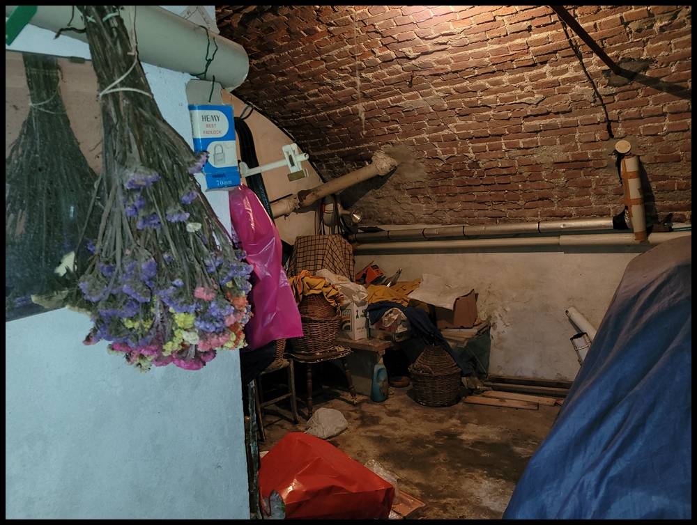 L'altra porzione, da ristrutturare, presenta al piano terra un negozio prospettante sulla via principale e una cantina.