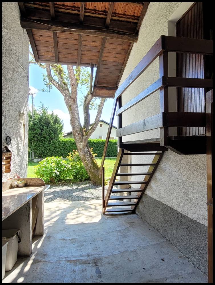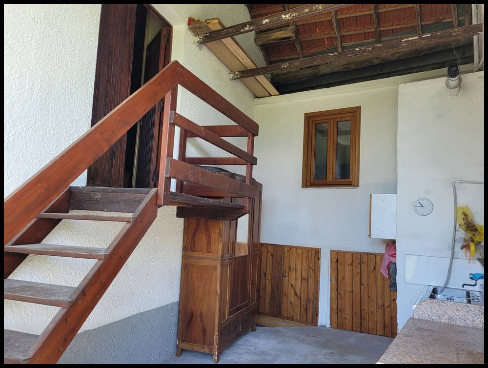 L' ampio porticato con forno a legna, barbecue e lavello, presenta una caratteristica scala in legno che conduce ad un magazzino, in parte porticato, trasformabile in residenziale.