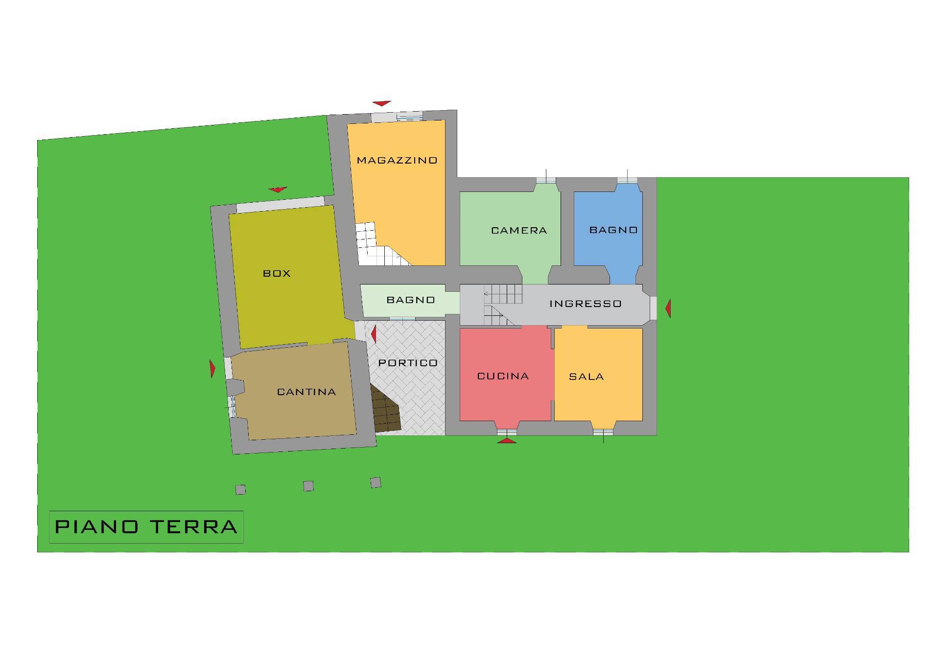 L'alloggio presenta al piano terra: ampio ingresso, cucina - soggiorno, sala da bagno e camera.