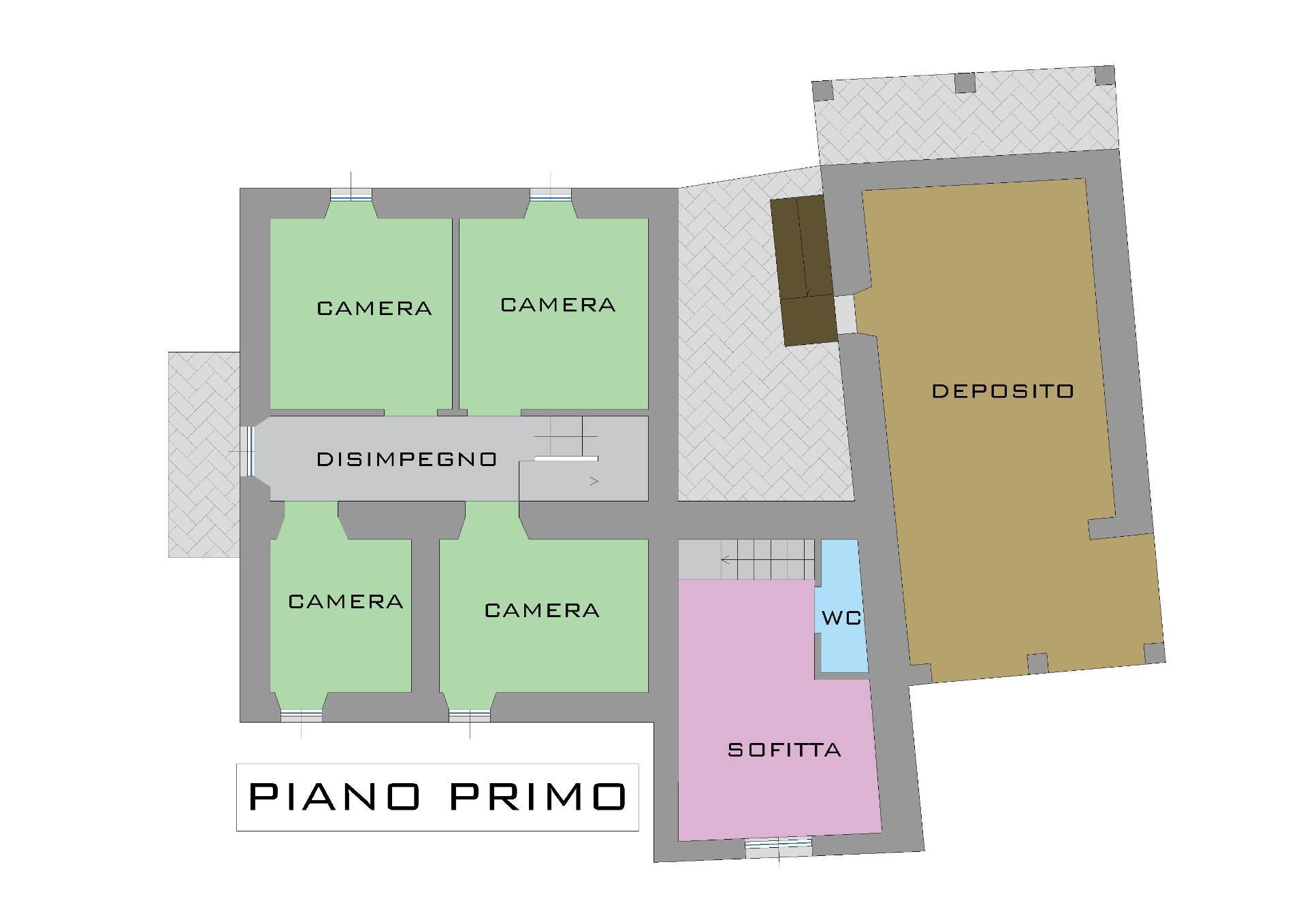 Al primo piano, raggiungibile da comoda scala, 4 camere e il secondo bagno nell'ammezzato.