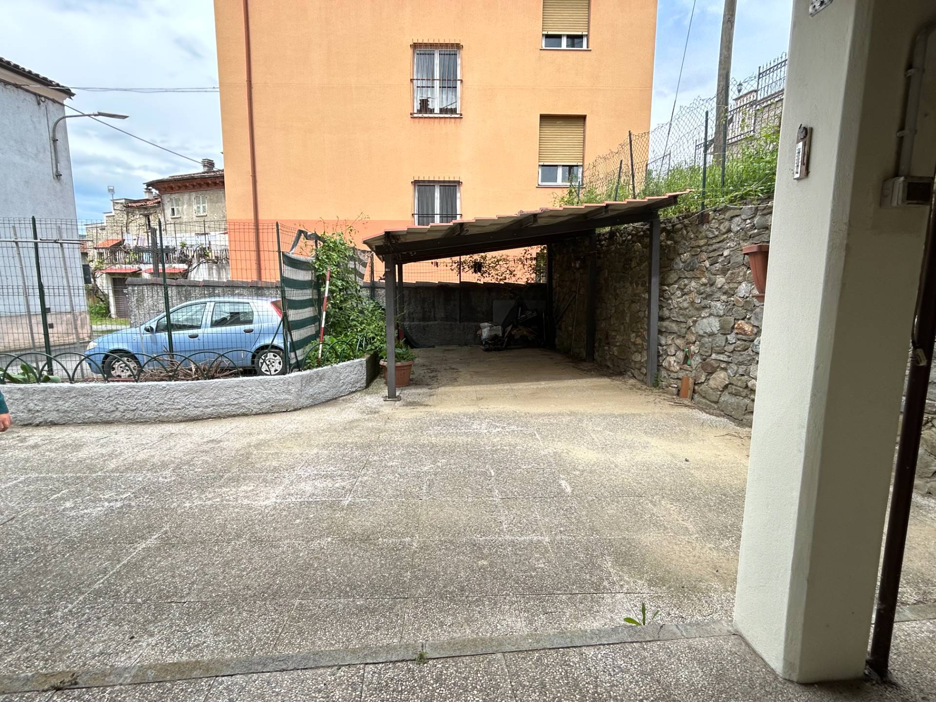 Nel cortile privato troviamo un ampio spazio pavimentato di cui una parte coperta ideale per parcheggiare comodamente una macchina e una porta che da accesso alla cantina della casa.