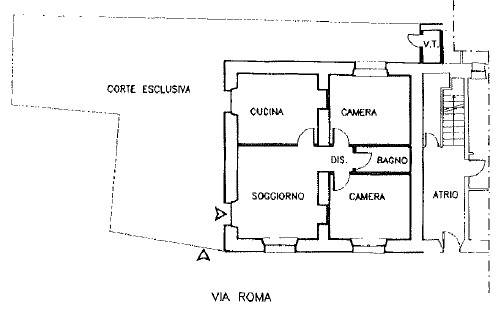Tramite un cancello che ci conduce nella corte interna e privata dell'immobile, accediamo all'ingresso della casa.