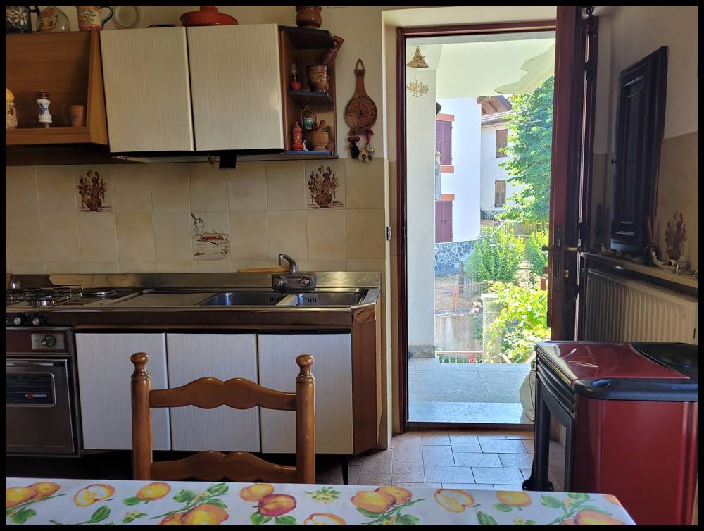 In cucina c'è una stufa a pellet in aggiunta al riscaldamento a metano.
