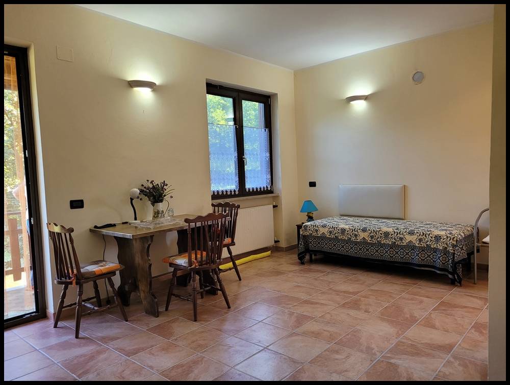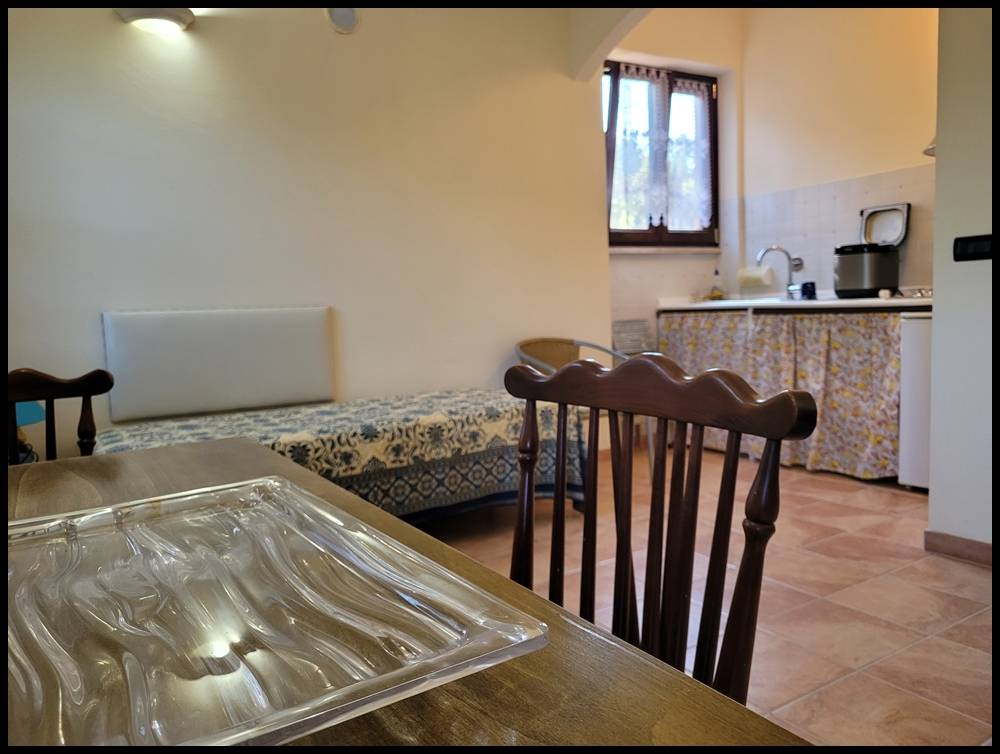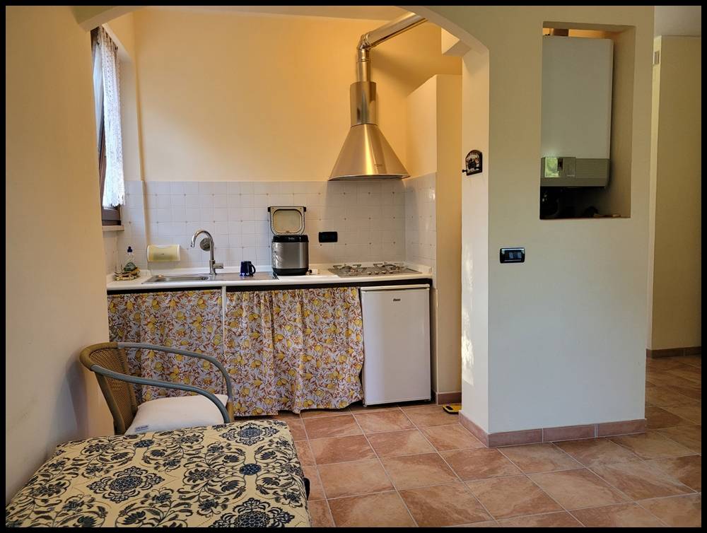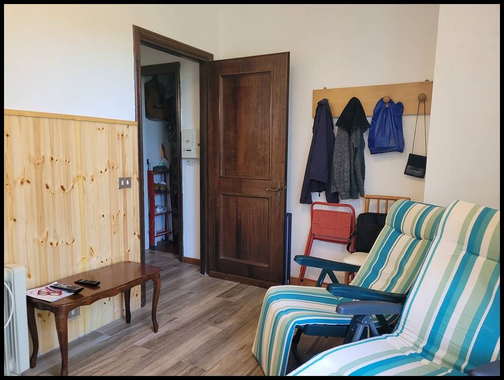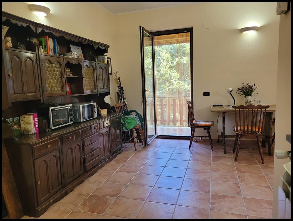 Al piano terra rialzato: ampio soggiorno con cucina a vista, camera, bagno e ripostiglio.
