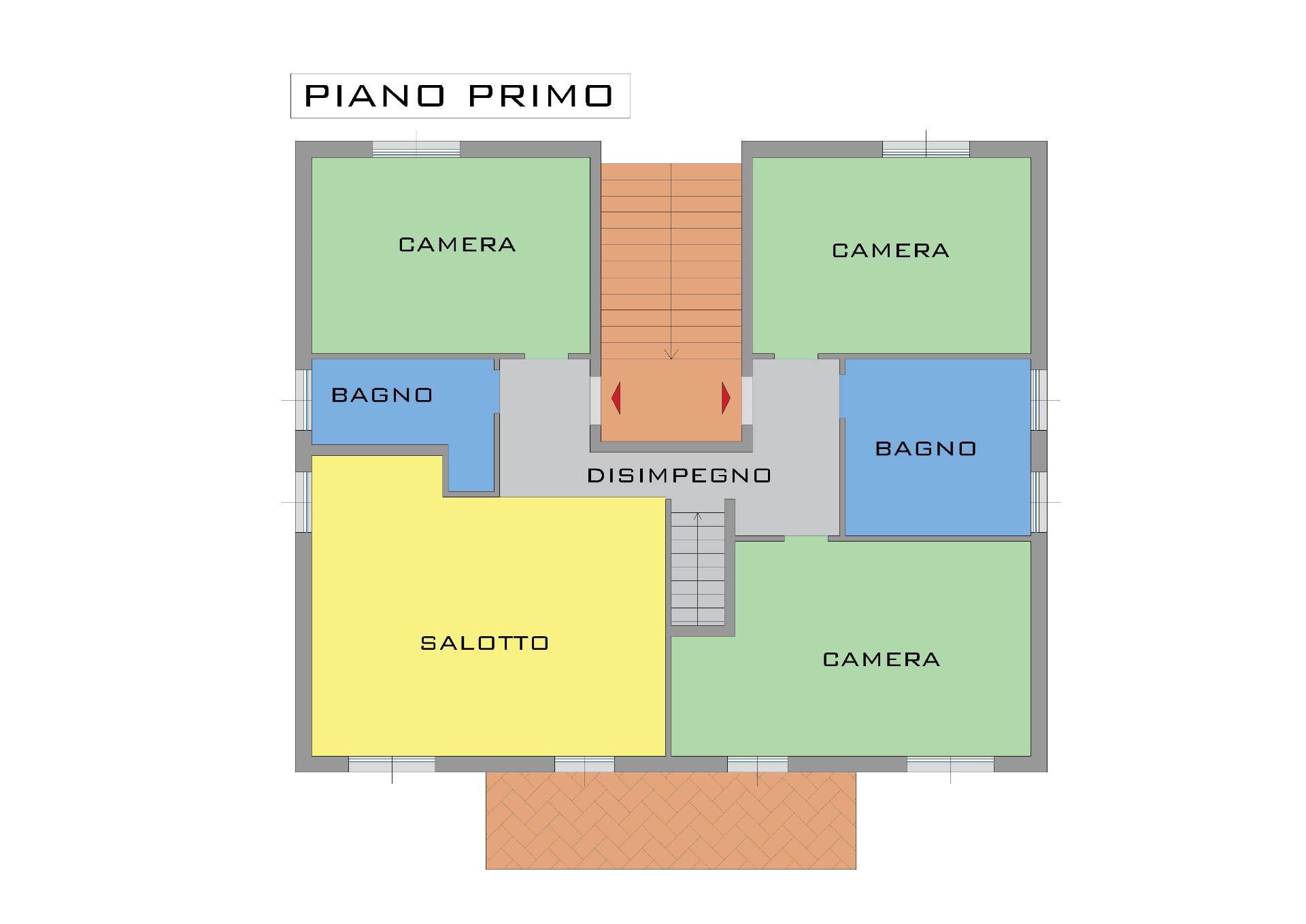 Al primo piano, raggiungibile da scala in legno interna e da scala esterna in muratura: salotto con balcone, tre camere e doppi servizi.