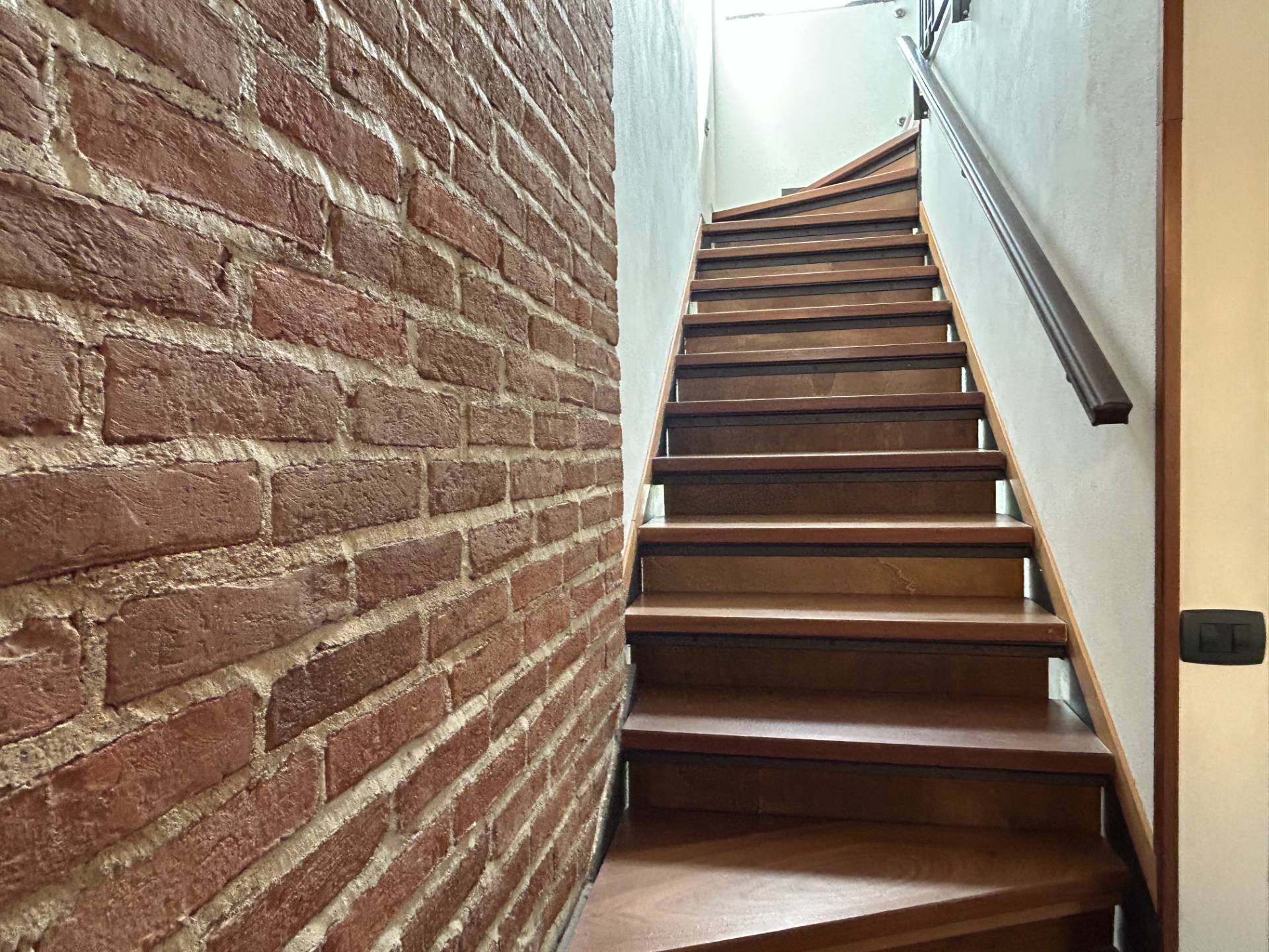 Le finiture in legno e mattoni a vista donano calore e autenticità agli interni, esaltando il carattere storico dell’edificio senza rinunciare al comfort moderno.