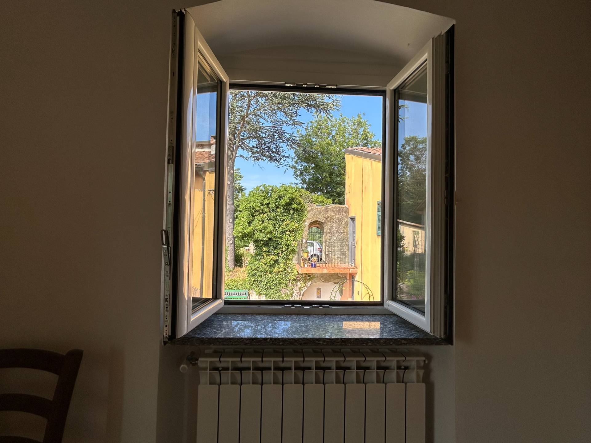 La proprietà gode di una posizione privilegiata con doppia vista: da un lato la verde vallata, dall’altro le suggestive architetture del borgo antico.