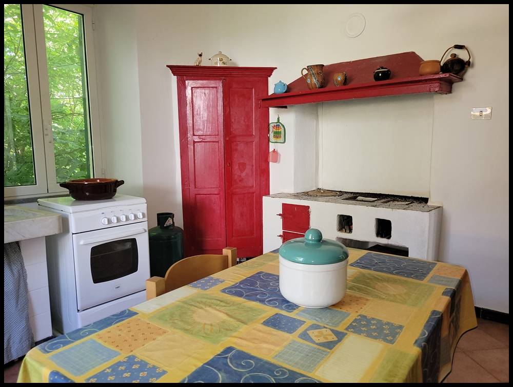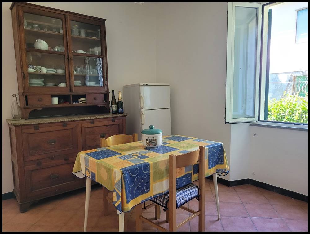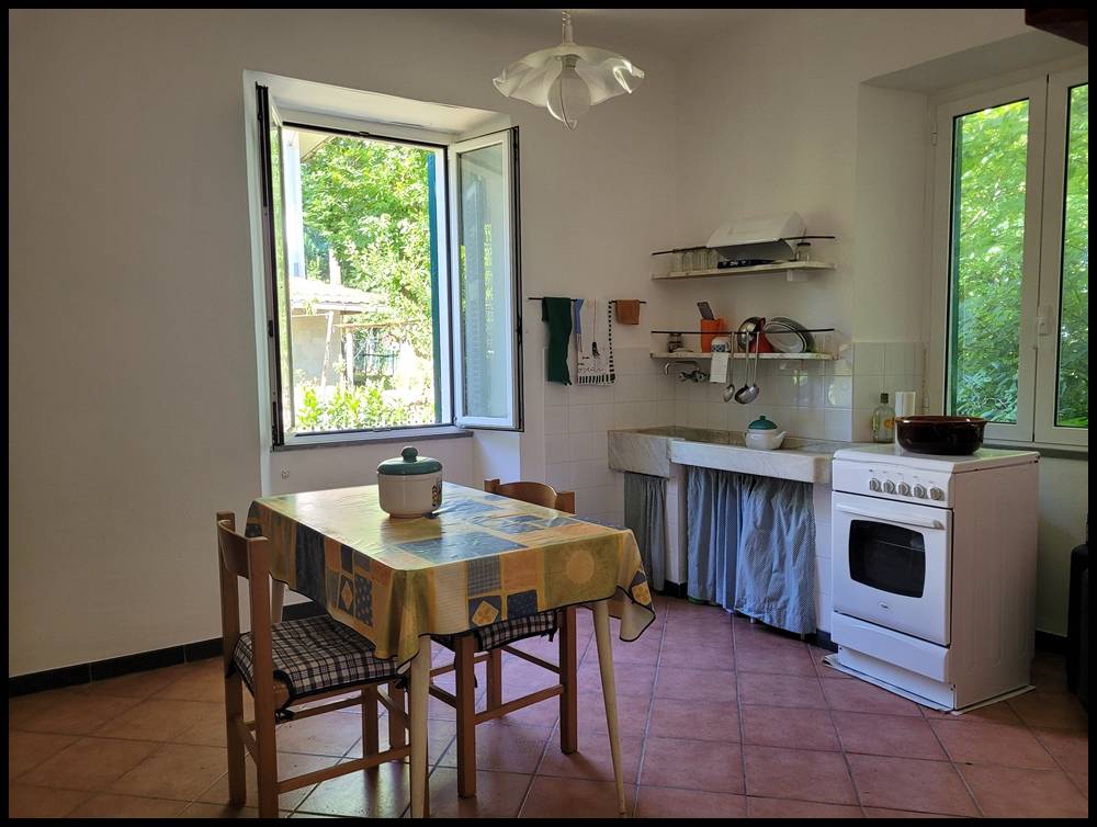 L'alloggio è stato recentemente ristrutturato, infissi interni ed esterni nuovi, presenta la predisposizione per il riscadamento con termosifoni, vi è la possibilità di installare una stufa a legna o pellet, e nella cucina sono stati mantenuti sia l'originale lavello alla genovese che il cosidetto "runfò" ovvero il piano di cottura a legna ancora in uso nei primi anni del novecento.