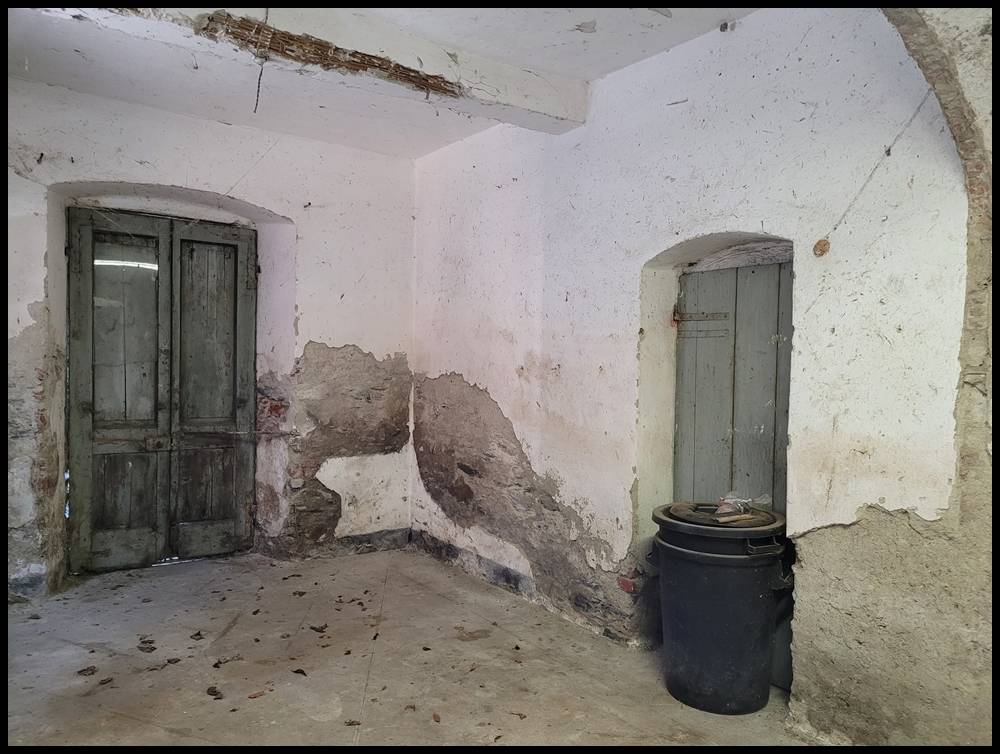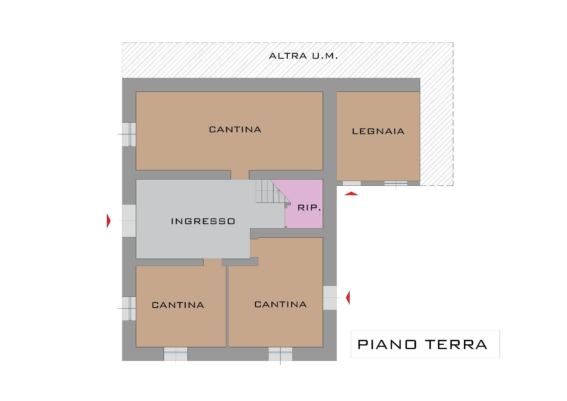 Al piano terra: ampio ingresso, due cantine voltate e luminose, una legnaia