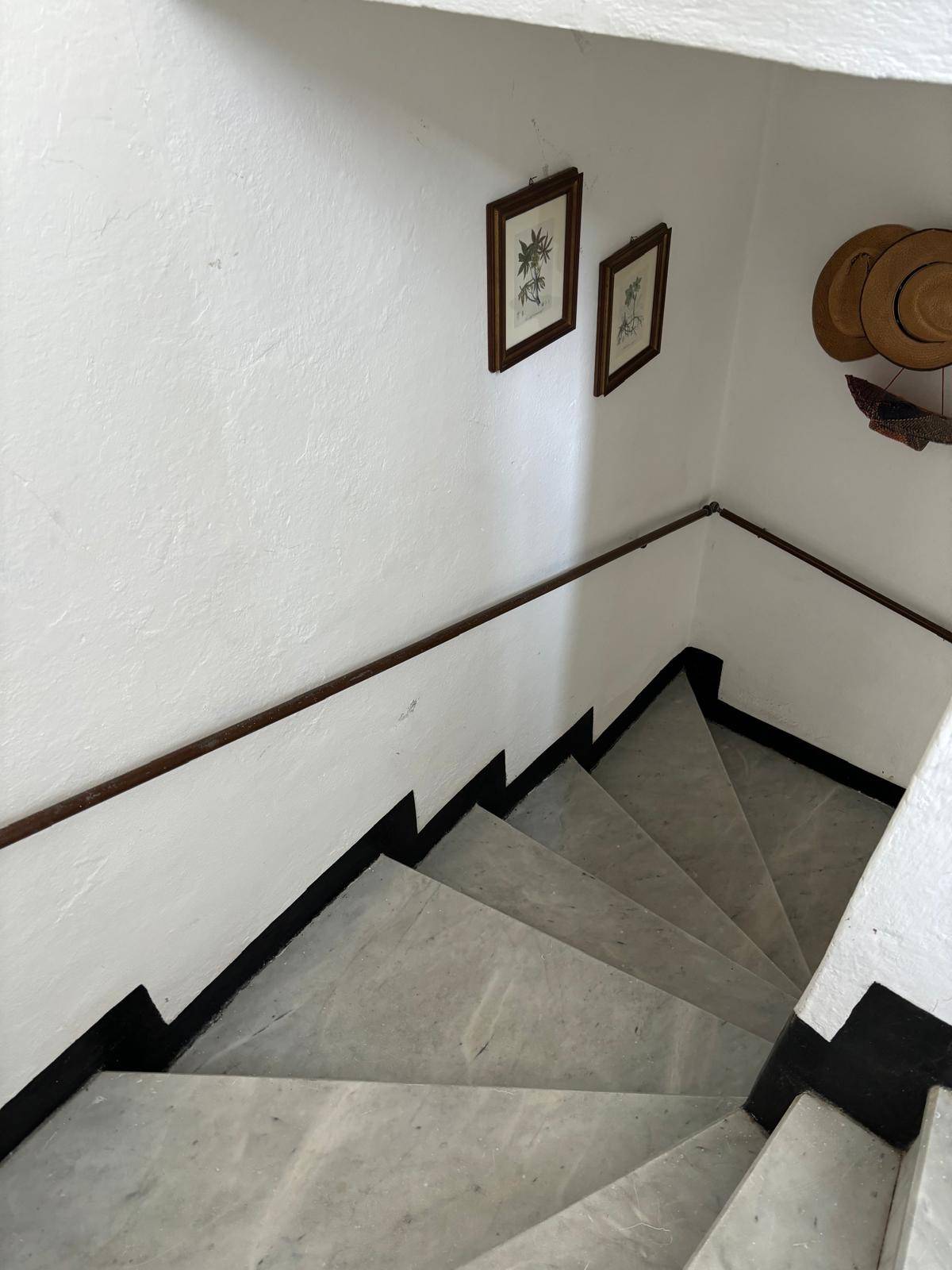 Una splendida scala ellittica in marmo, in perfetto stato, collega armoniosamente i vari piani.