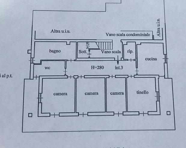 L'Appartamento è composto da una cucina con termo cucina, una sala da pranzo, un ripostiglio, tre spaziose camere da letto e due bagni.
