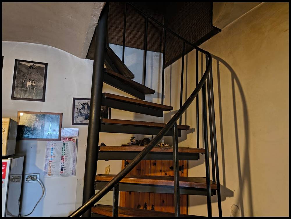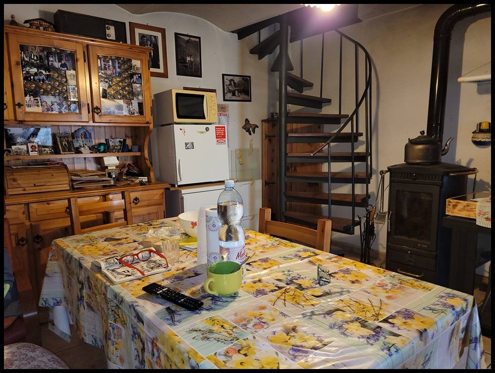 Al primo piano, raggiungibile da scala a chiocciola, salotto con caminetto a legna e balcone coperto e altra camera da letto.