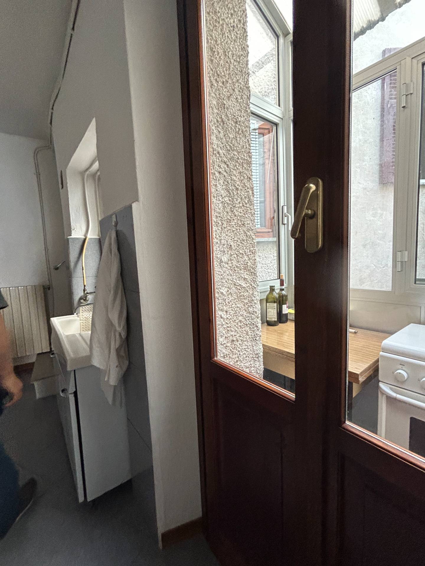 Una scala interna collega i piani: a metà si trova il bagno finestrato, completo di doccia e tutti i servizi.