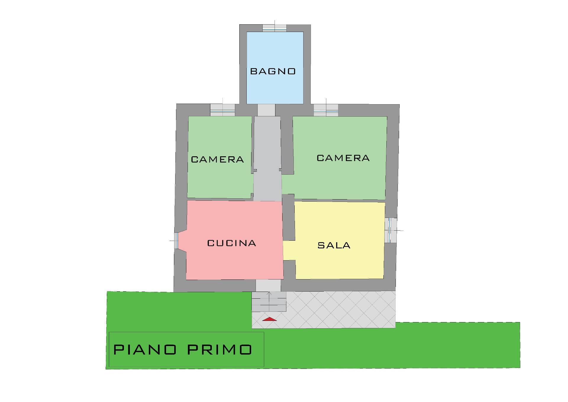 Al piano terra: cucina abitabile, sala, due camere e bagno