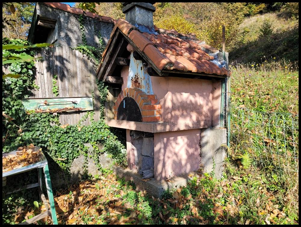 Il giardino, disposto su tre fasce recintate, presenta una zona con forno a legna e lavandino ideale per pranzi all'aperto