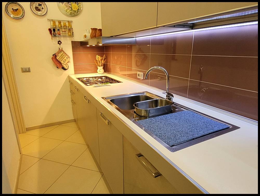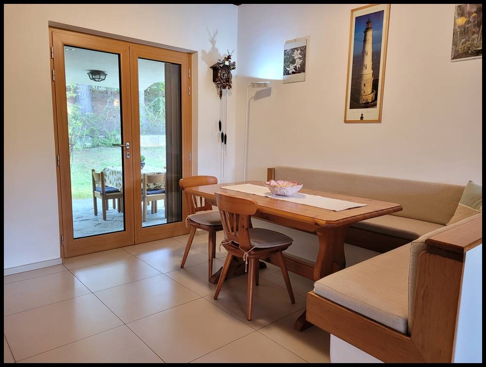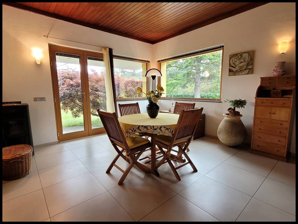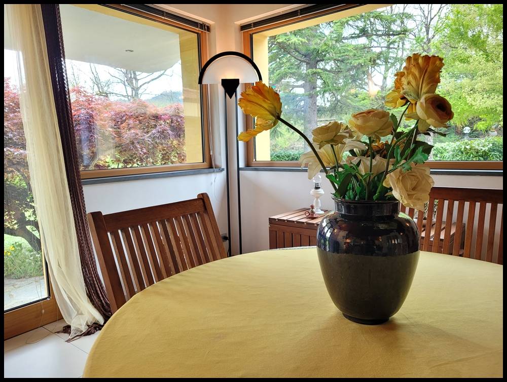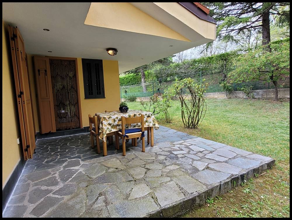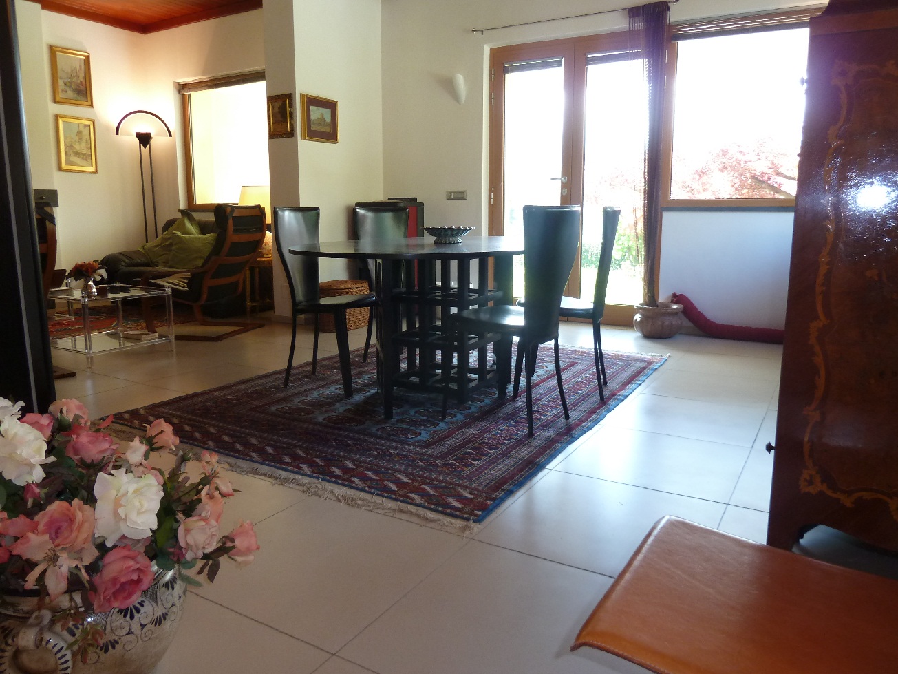 Dalla cucina e tinello si esce in una zona pranzo all'aperto appartata e fresca anche nella stagione estiva.