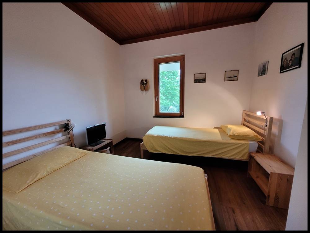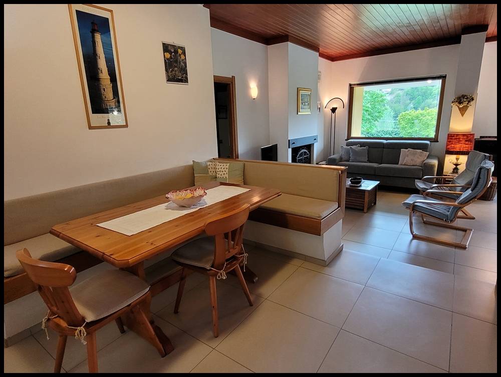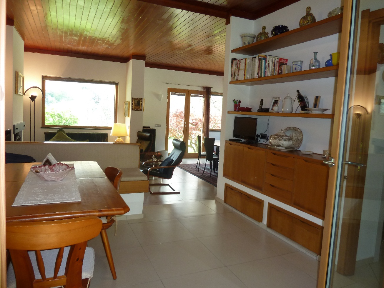Internamente l'ingresso affaccia sull'ampio e luminosissimo soggiorno con caminetto, tinello e cucina, dispensa, lavanderia e locale caldaia. Dal soggiorno si gode di una splendida vista centro storico di Sassello.