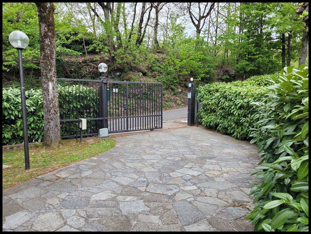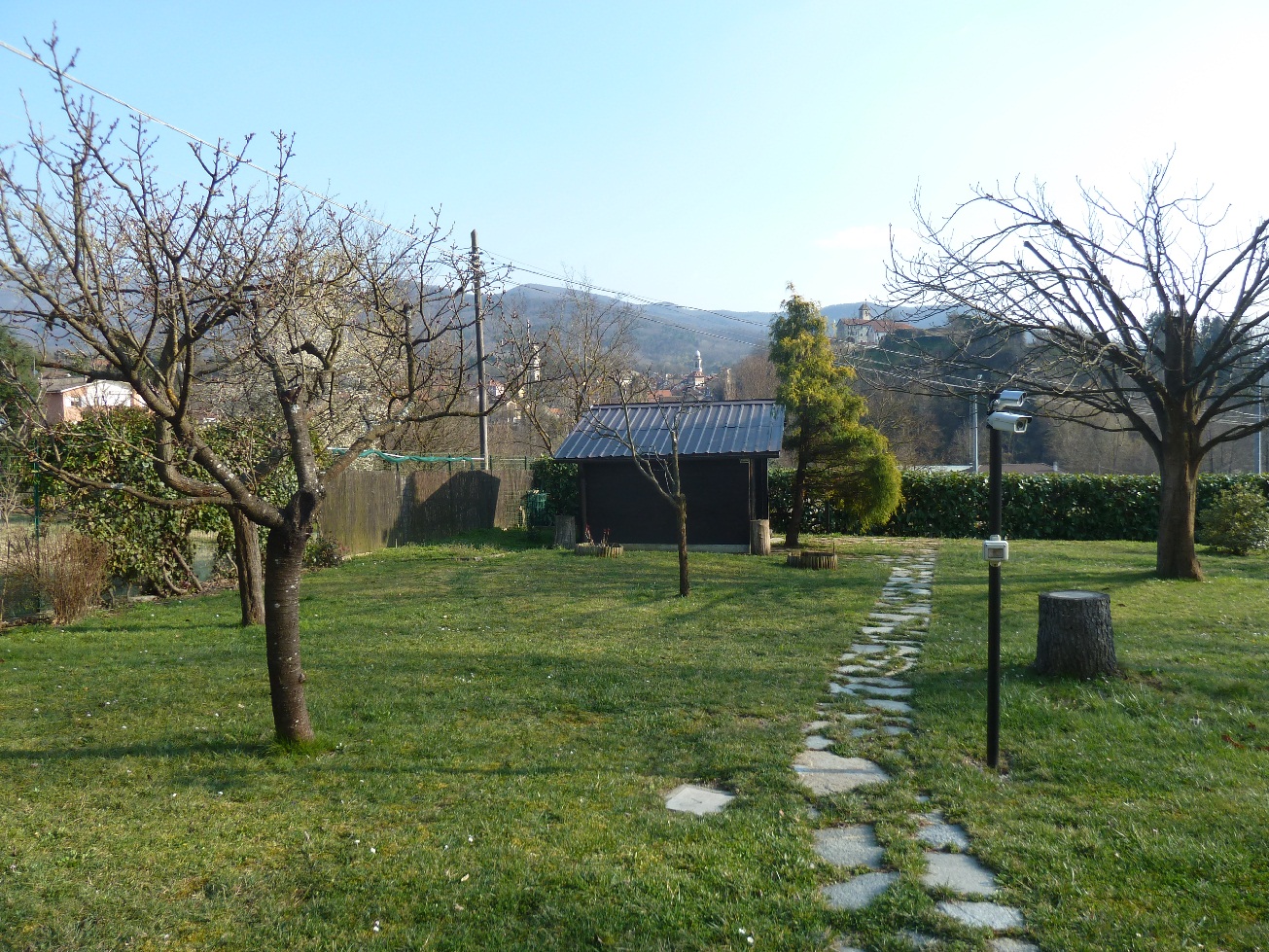 Il giardino, accessibile con cancello elettrico, è variamente piantumato e molto curato, presenta ovunque l'illuminazione e ospita un capanno per ricovero attrezzi.
