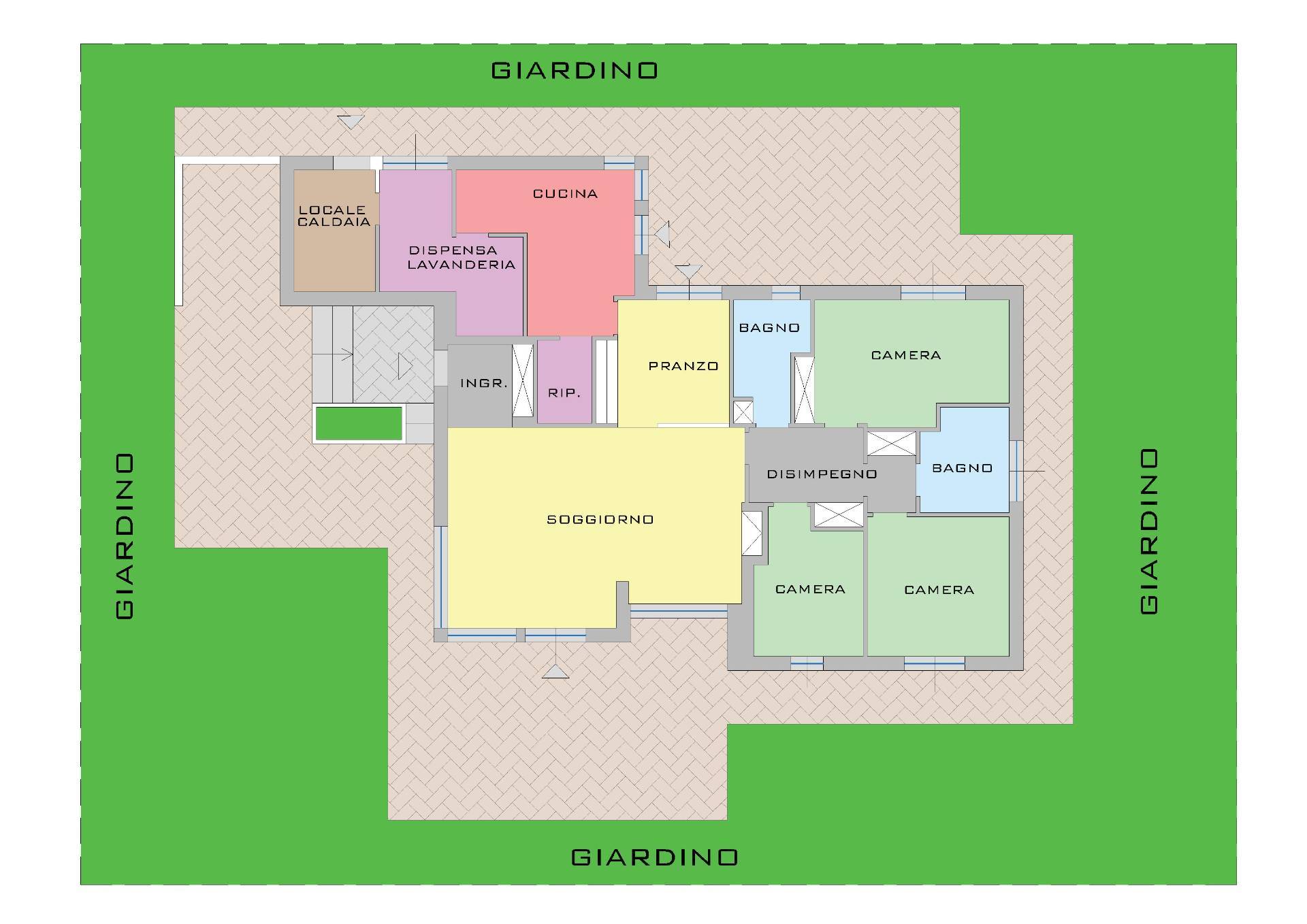 La superficie abitabile è di circa 170 mq, l'accesso avviene attraverso un porticato con adiacente posto auto coperto.