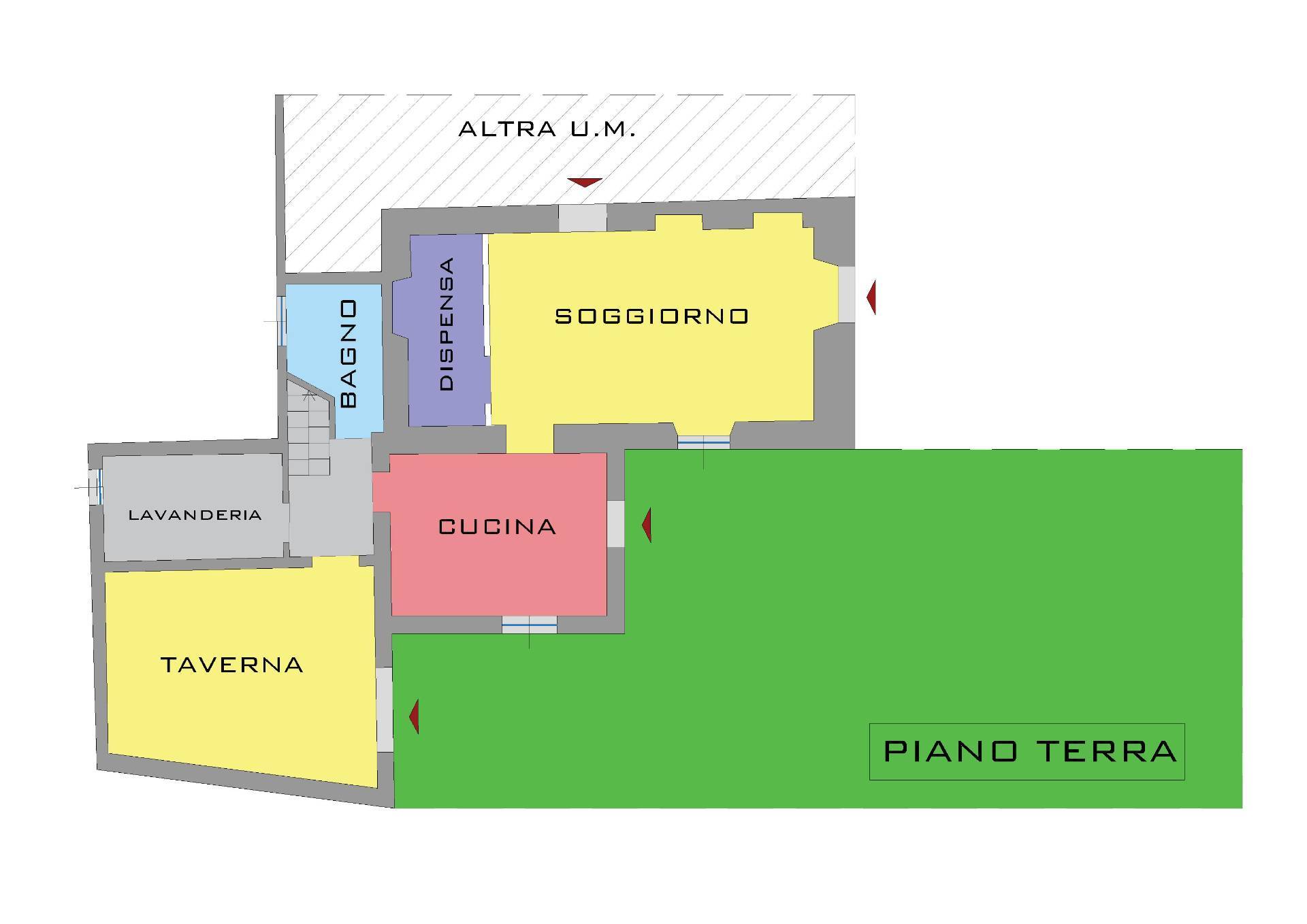 Al piano terra, con ingresso indipendente dal giardino di proprietà: taverna, cucina abitabile, ampio soggiorno, bagno finestrato, dispensa e lavanderia