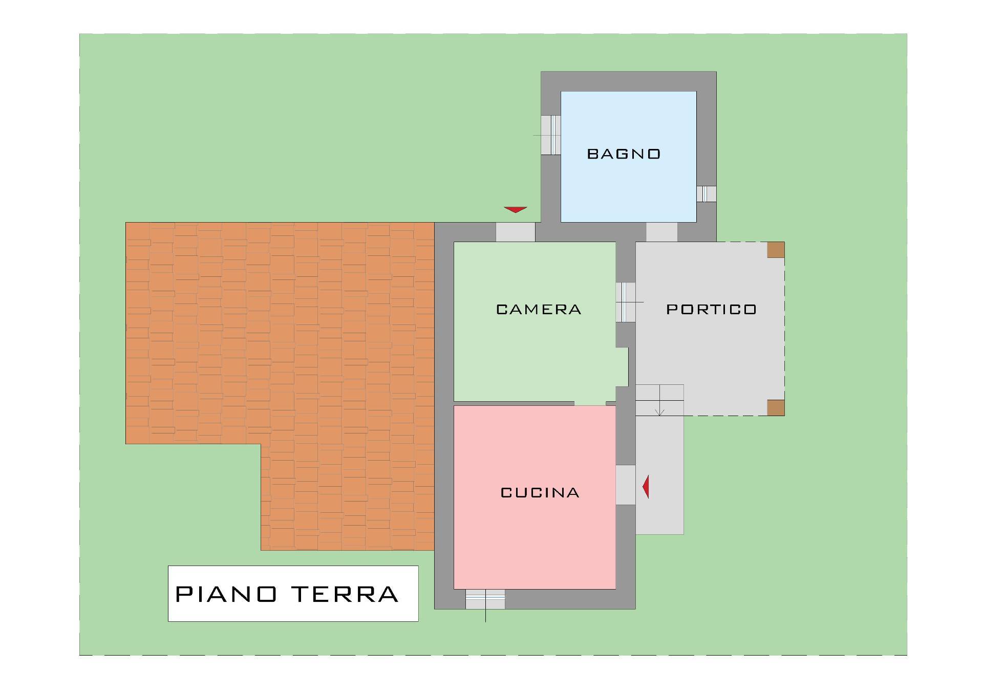 Al primo piano, accessibile da portico in legno e scala esterna: cucina e due camere.