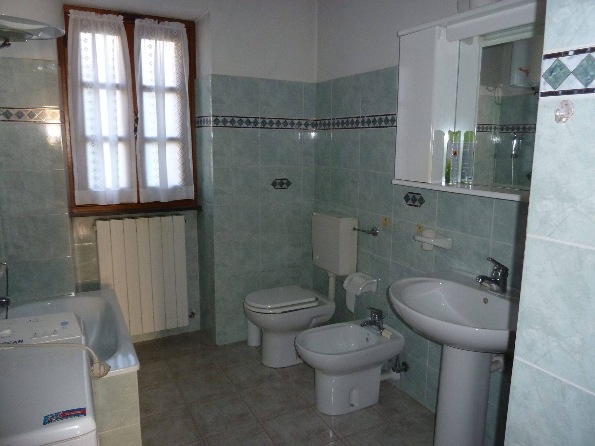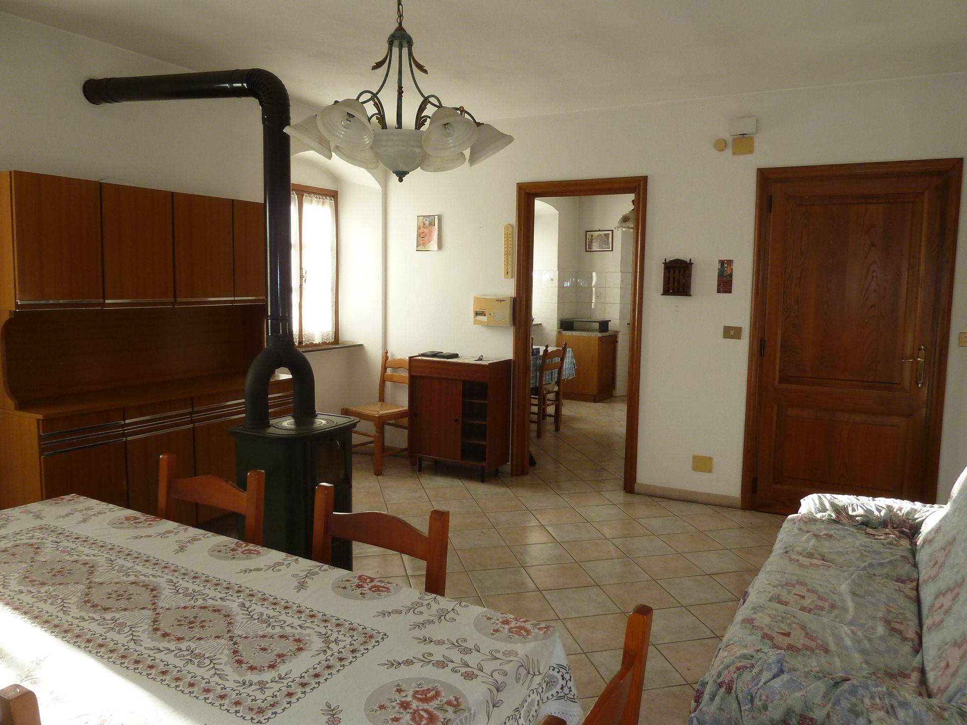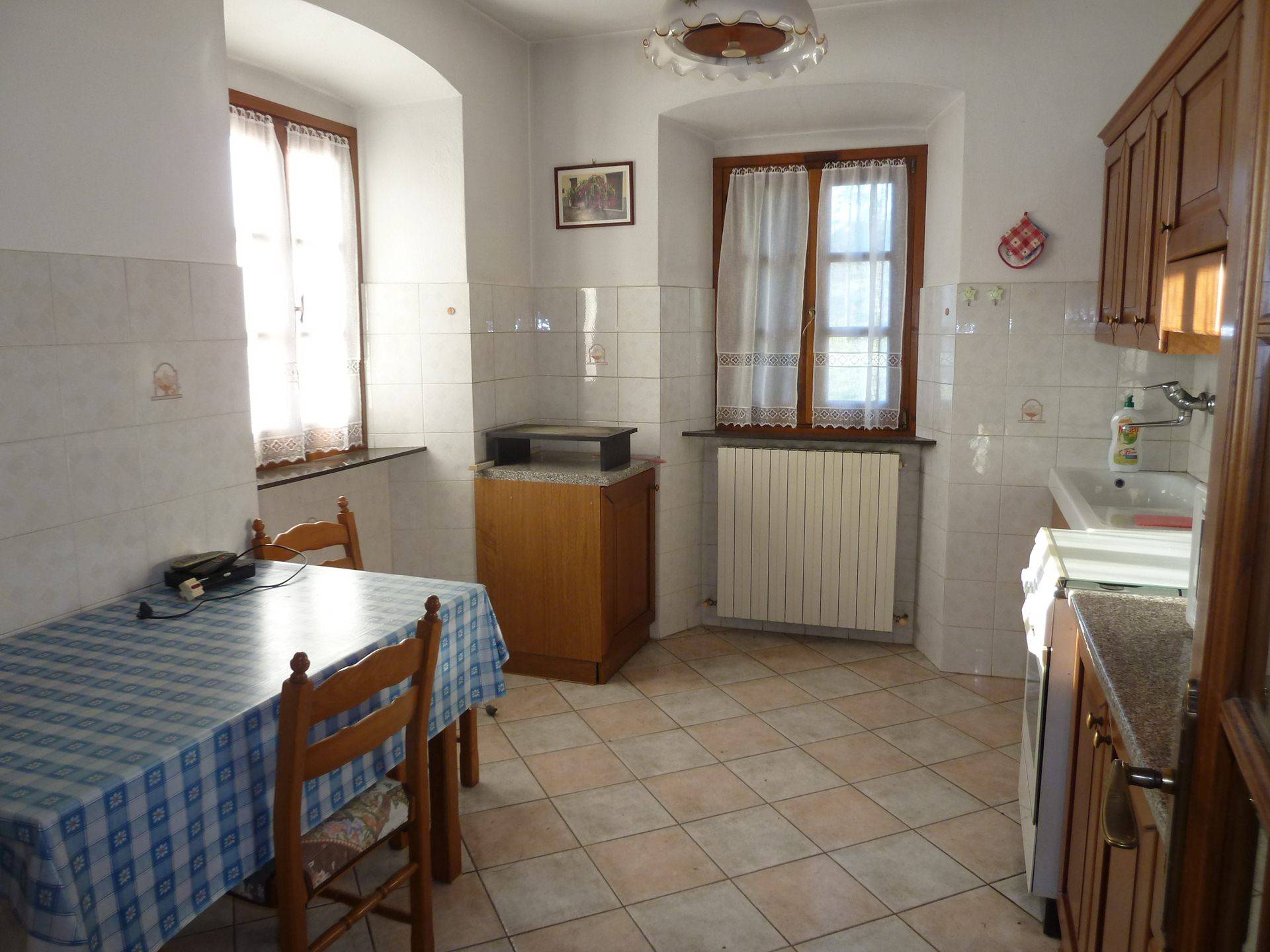 Al primo piano si trova un alloggio composto da soggiorno, cucina abitabile, due camere e bagno.