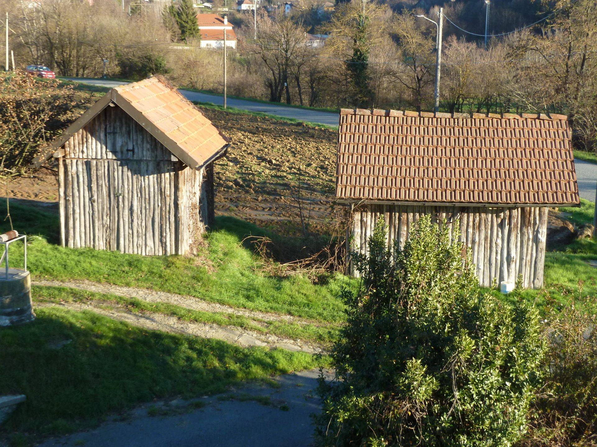 Il terreno è circa un ettaro e comprende tre magazzini agricoli.