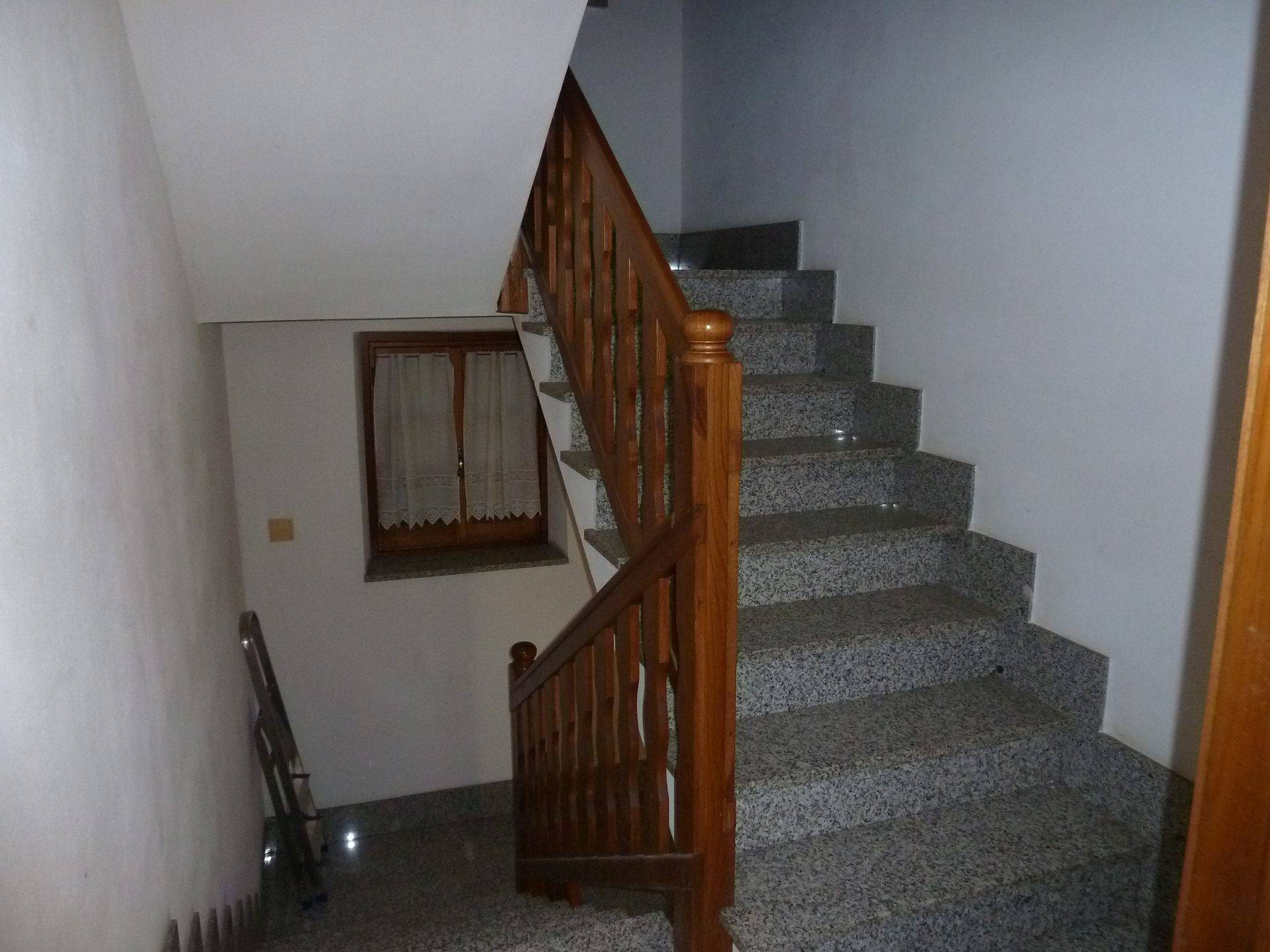 Il fabbricato principale al piano terreno ha il grande box auto, la cantina e il locale caldaia oltre la scala di accesso agli alloggi.
