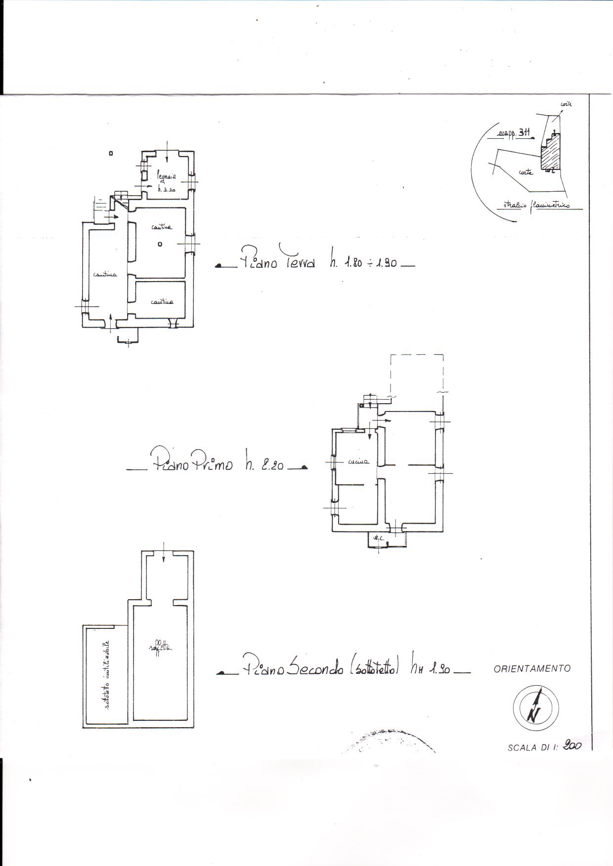 L'antica abitazione era collocata al primo piano dove si trovano la cucina abitabile, con altri tre vani, il servizio si trova sul balcone per un totale di mq. 50 circa.