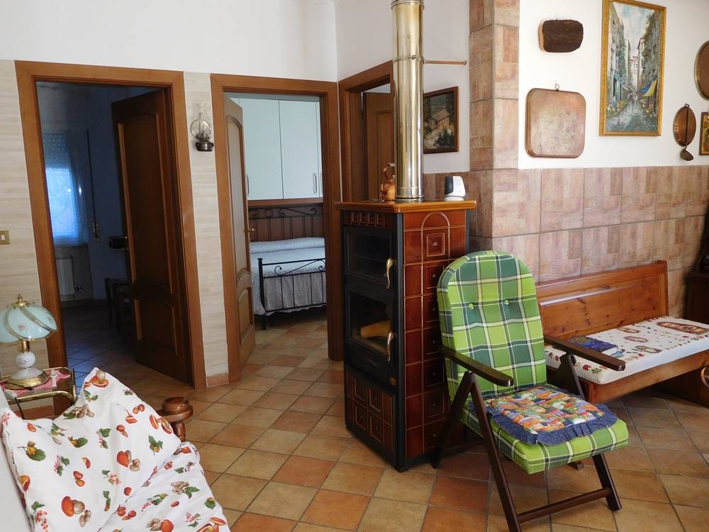 Impianto di riscaldamento con caldaia a metano oltre a stufa a pellet in sala.